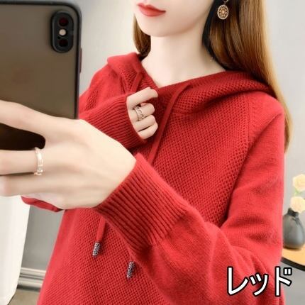 トップス ニット 4色 フード付き セーター 長袖 レディース シンプル カジュアル ラフ 無地 ホワイト 白 ベージュ ブルー 青 赤 レッド くすみカラー 10代 20代 30代 40代 50代 春 秋 冬 お洒落 オシャレ かわいい 大人可愛い こなれ感 あったか 暖かい 着心地 柔らか 着回し 女子会 デート モテ 休日 お出かけ ショッピング Iライン ストレート 新作 2022 S М L XL ゆったり 大きめ 大きいサイズ 体型カバー ゆる ルーズ 部屋着 ルームウェア リラックス
