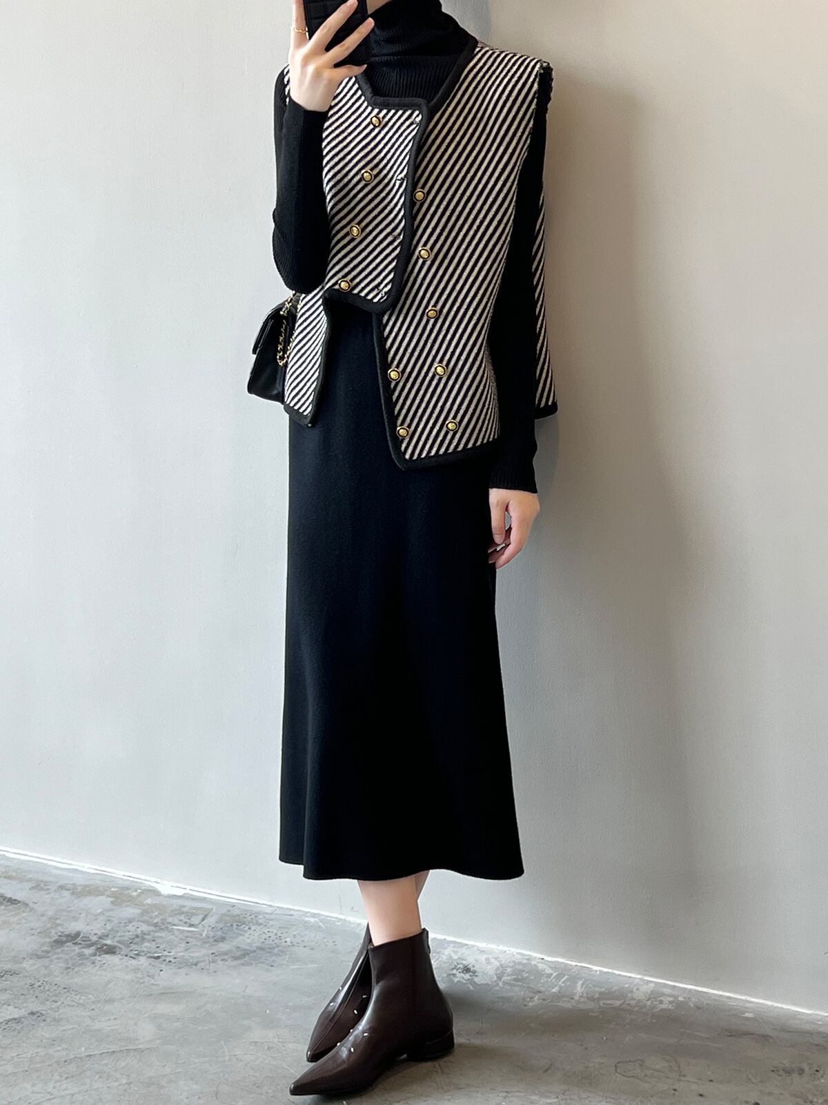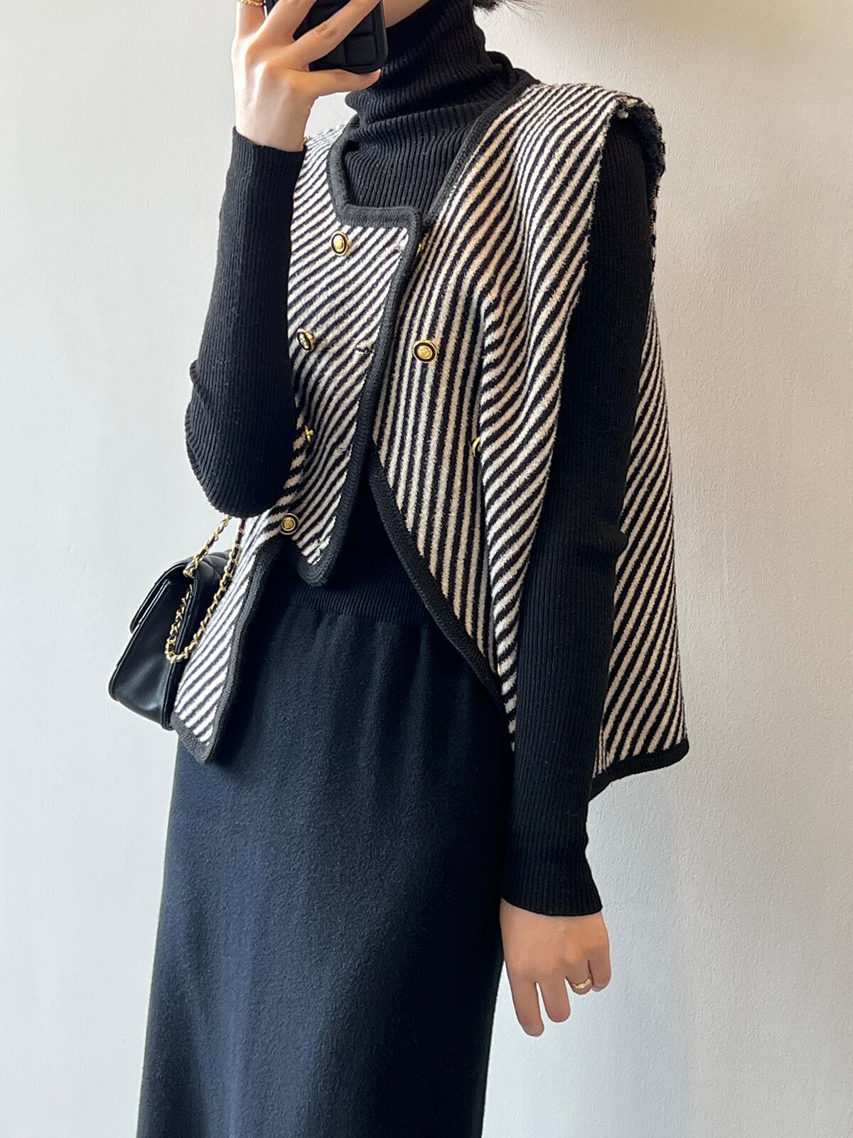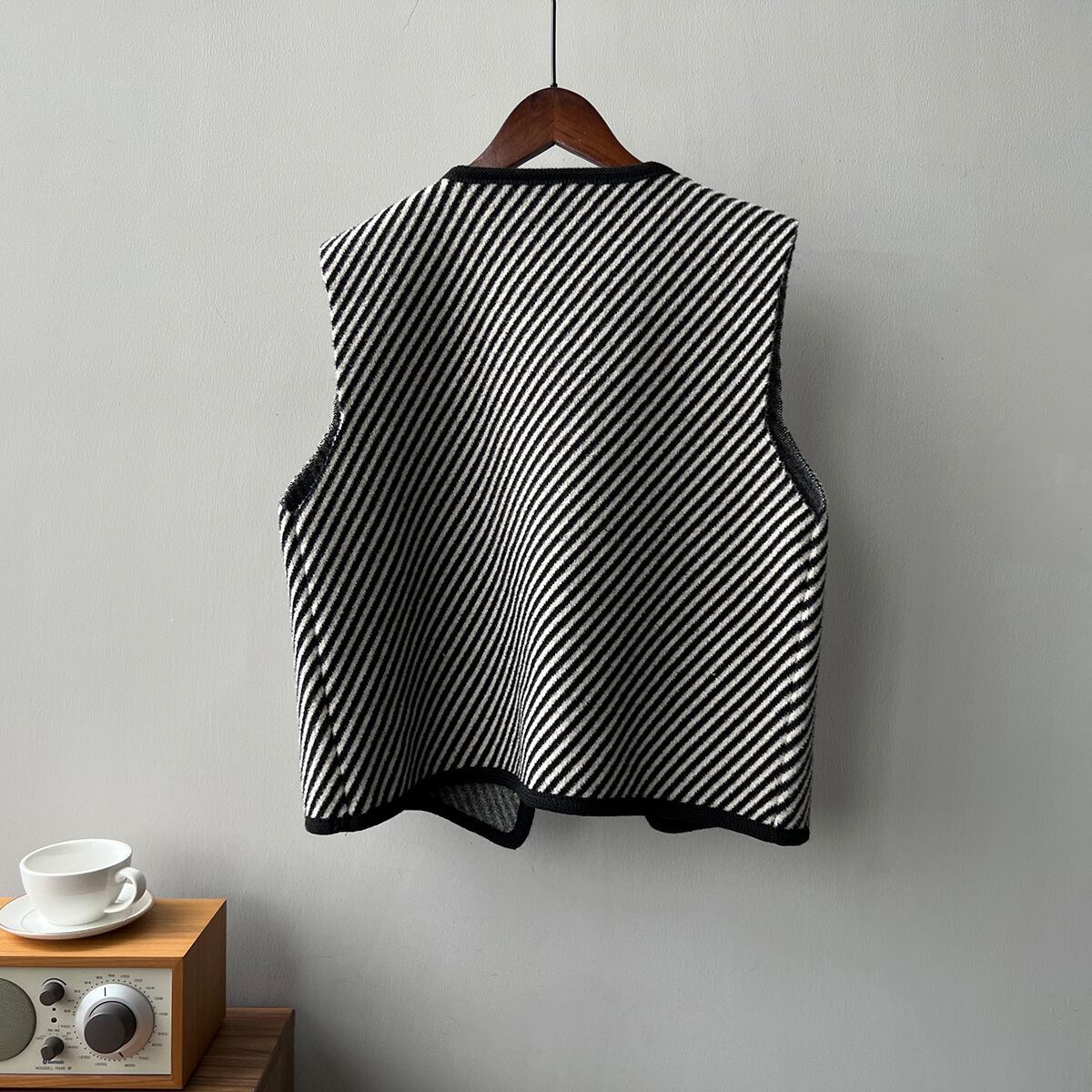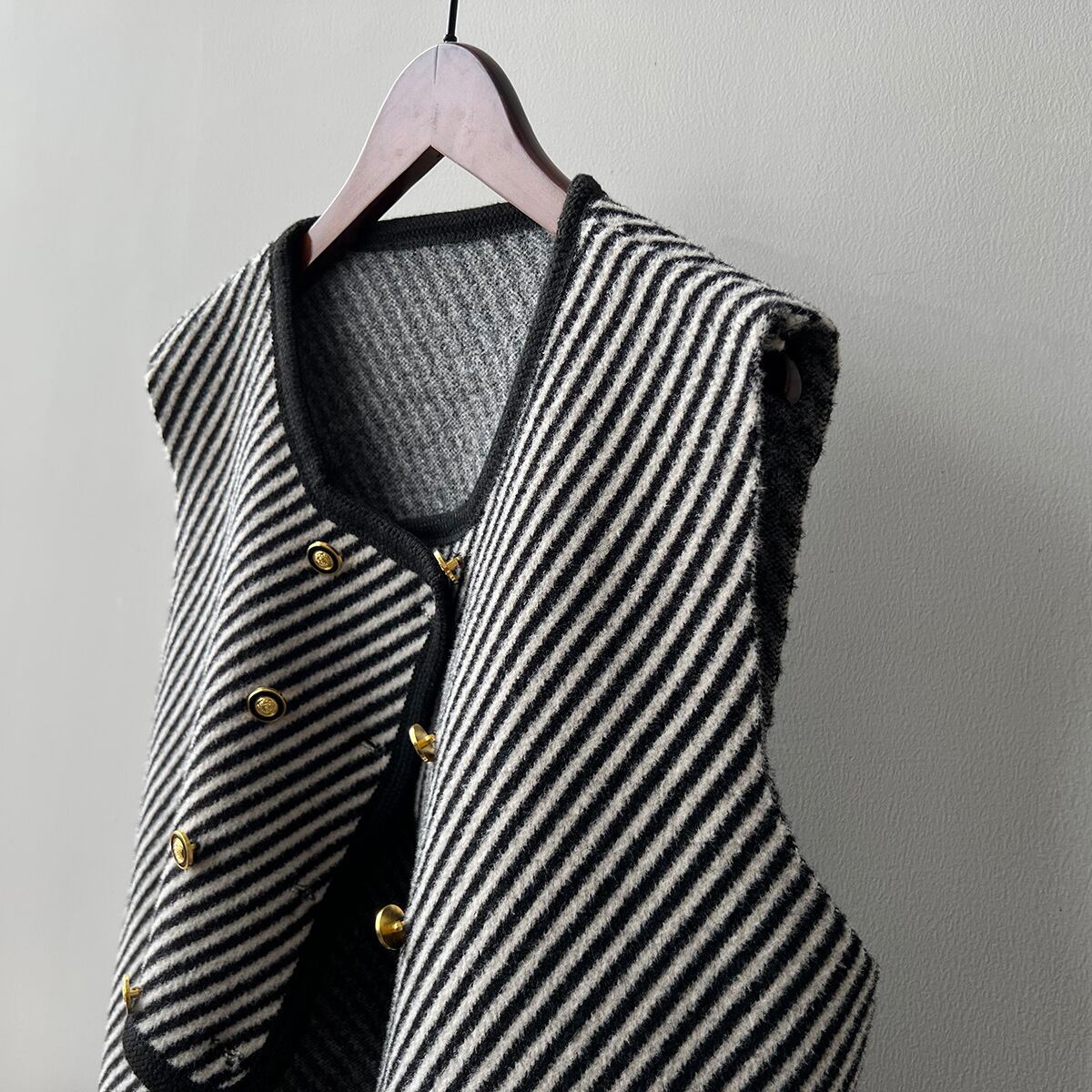 トップス ベスト 前開き ストライプ バイカラー レディース スクエアネック ノースリーブ オシャレ お洒落 きれいめ 上品 エレガント 高級感 かわいい 大人可愛い 20代 30代 40代 50代 着回し 重ね着 シンプル カジュアル ラフ ジレ チョッキ ブラック 黒 ホワイト 白 華奢 細見え ゆったり 春 秋 冬 抜け感 こなれ感 レトロ アンティーク ヴィンテージ 韓国 トレンド 個性的 個性派 普段使い 女子会 薄手 休日 ショッピング ボーダー アシンメトリー 映え SNS ゆったり