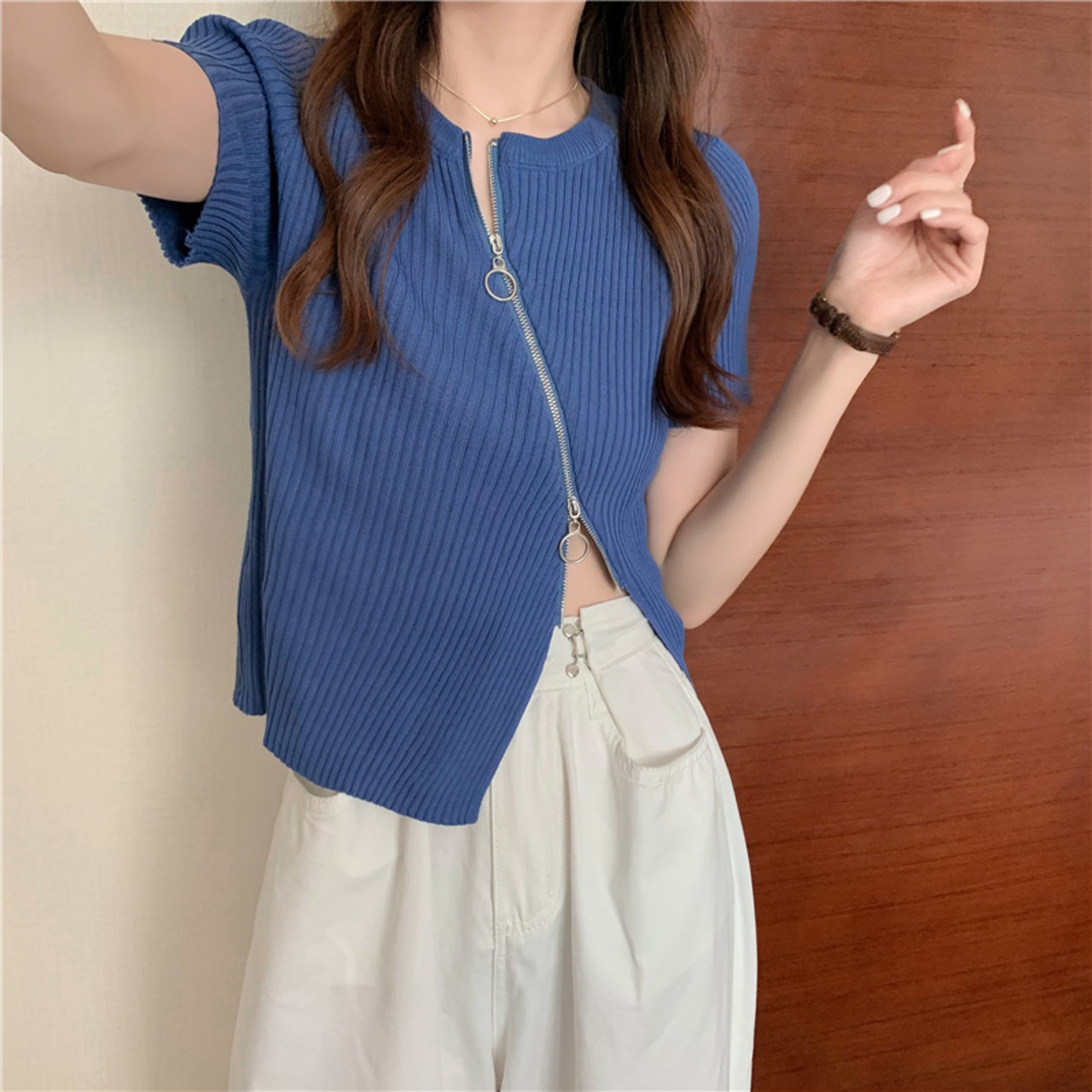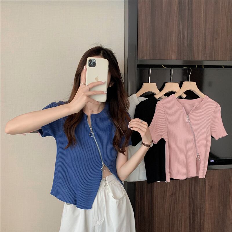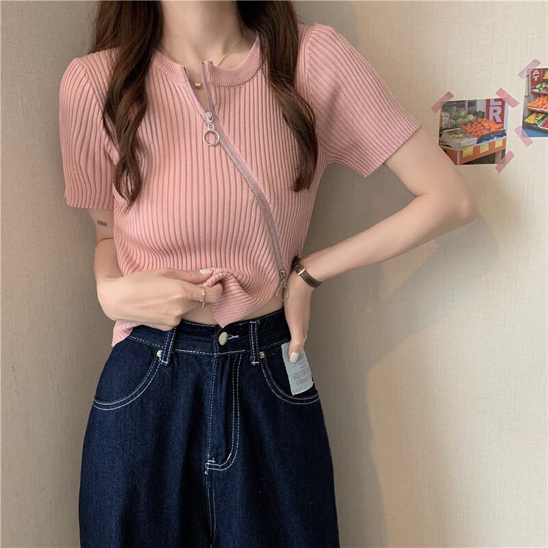 トップス レディース カットソー ニットソー リブニット 半袖 ラウンドネック ジップアップ ファスナー アシンメトリー 大人可愛い きれいめ シンプル 大人 おしゃれ お洒落 かっこいい 大人女子 こなれ感 個性的 クール 存在感 抜け感 フリーサイズ ワンサイズ 白 ホワイト 黒 ブラック ピンク ブルー 青 無地 春 夏 秋 10代 20代 30代 40代 ママ 通学 学生 お出かけ 休日 アウトドア イベント 旅行 プレゼント ギフト 普段使い お揃い 双子 韓国 オルチャン