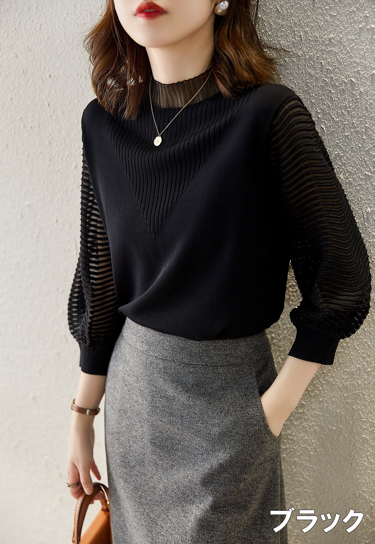 ニット レディース トップス セーター プルオーバー ニットトップス L ホワイト 白 ブラック 黒 大人カラー くすみカラー ニュアンスカラー 透け感 シースルー シアースリーブ 秋 冬 長袖 クルーネック スタンドカラー ショート丈 ストレート ママ フェミニン ナチュラル カジュアル きれいめ きれカジ 大人 大人可愛い こなれ感 ぬけ感 休日 お出かけ ガーリー キュート モテ 存在感 主役級 定番 万能 着回し 王道 こなれ感 ぬけ感 学生 通学 韓国 オルチャン 上品 エレガント お呼ばれ