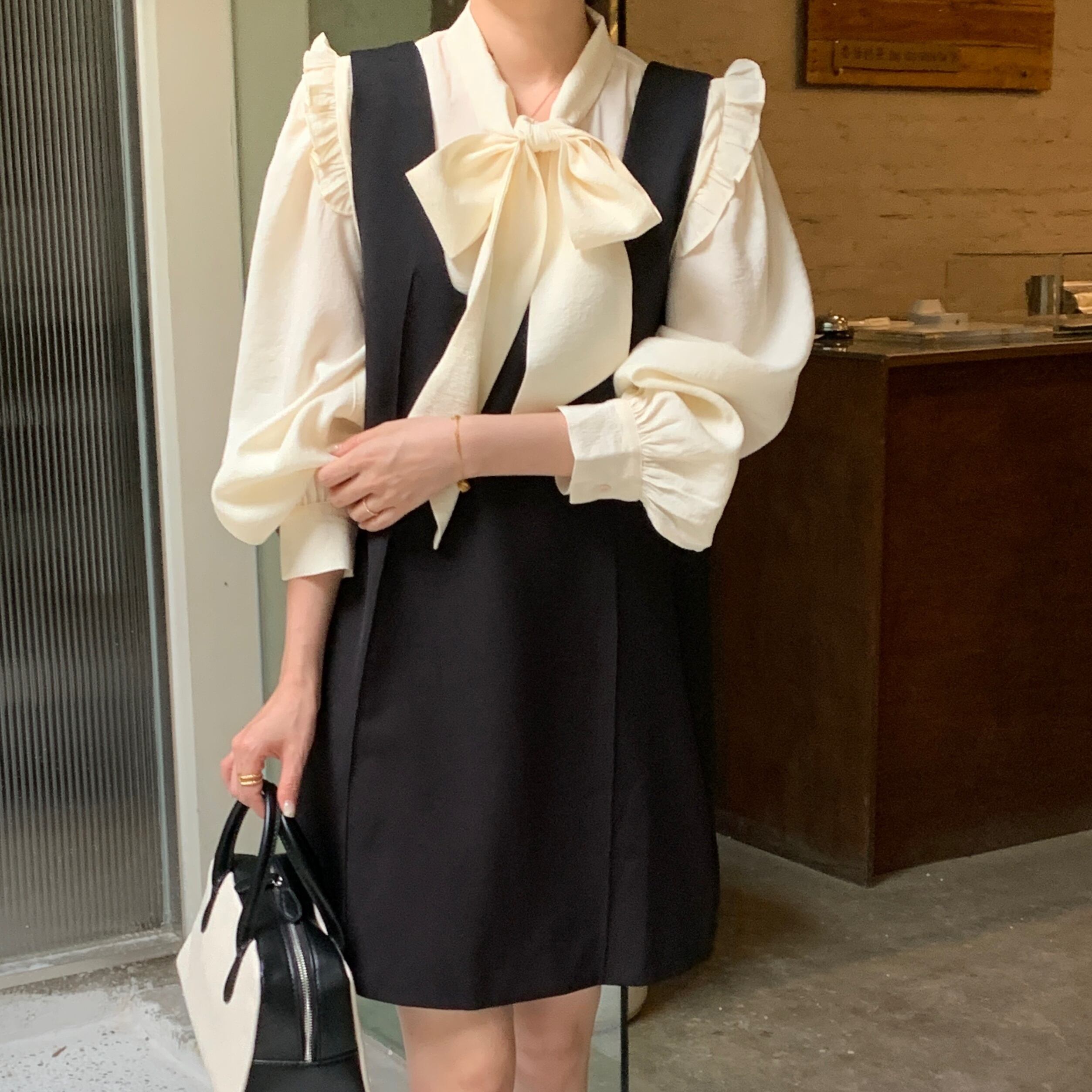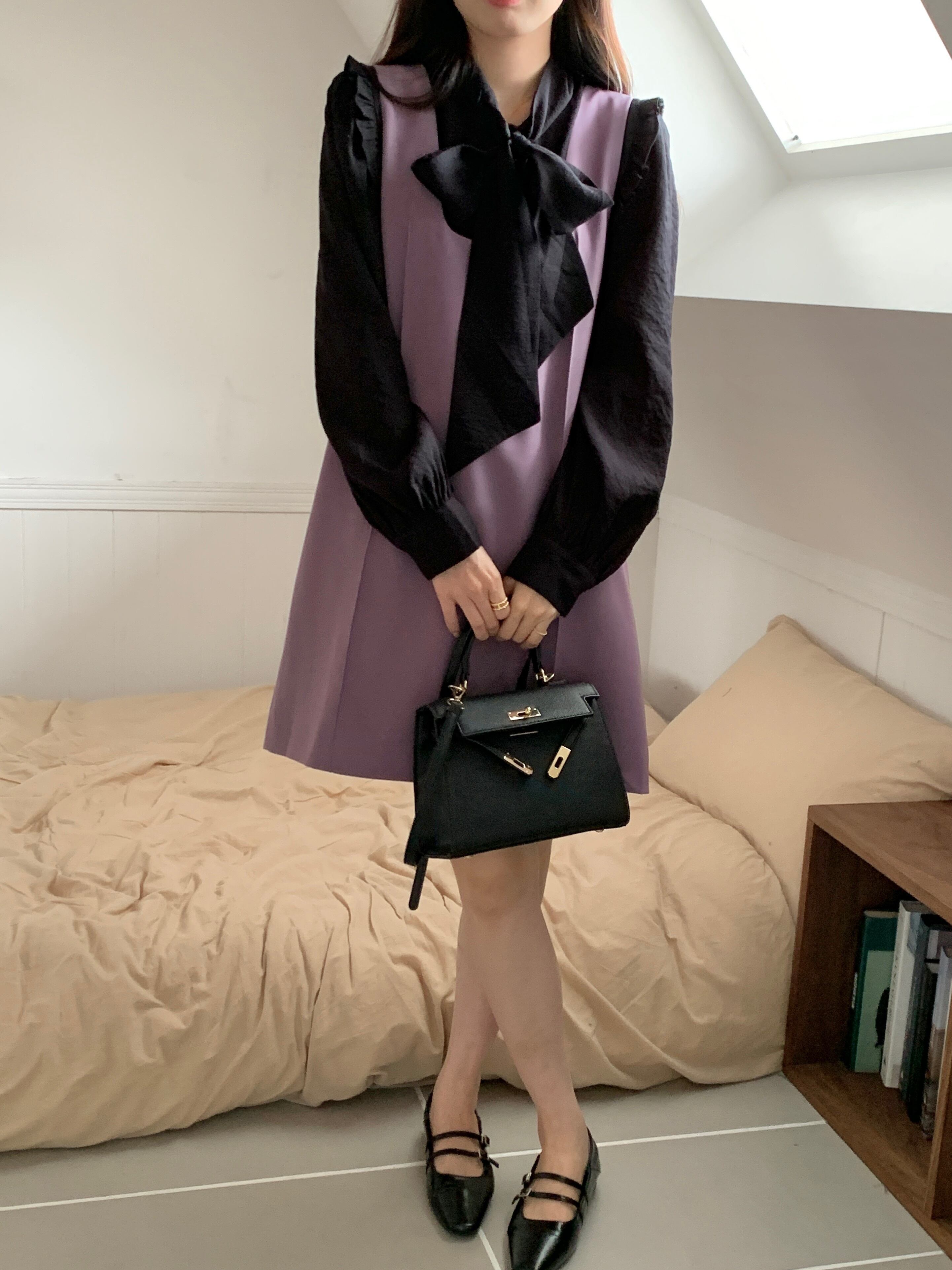 ガーリーなブラウスとワンピースのセットアップです。