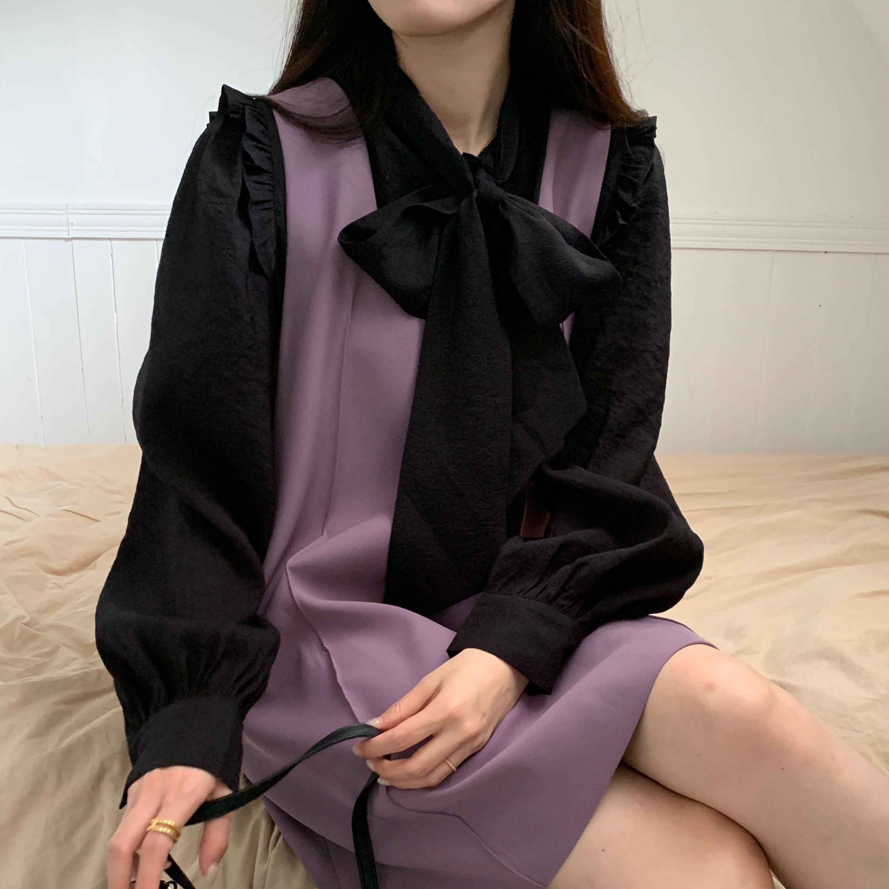 セットアップ 上下セット ワンピース ブラウス フリル リボン レディース 量産型 地雷系 姫系 オシャレ お洒落 かわいい 大人可愛い ガーリー フェミニン きれいめ エレガント 長袖 無地 ミニ丈 膝上 黒 ブラック パープル 紫 お得 お買い得 楽ちん 着回し 春 秋 冬 カジュアル 体型カバー 着痩せ 10代 20代 30代 ジャンパースカート Iライン ストレート パフスリーブ トップス 薄手 タック ボウタイ 2点セット 映え SNS 女子会 王道 双子 お揃い 色違い コーデ トレンド 流行