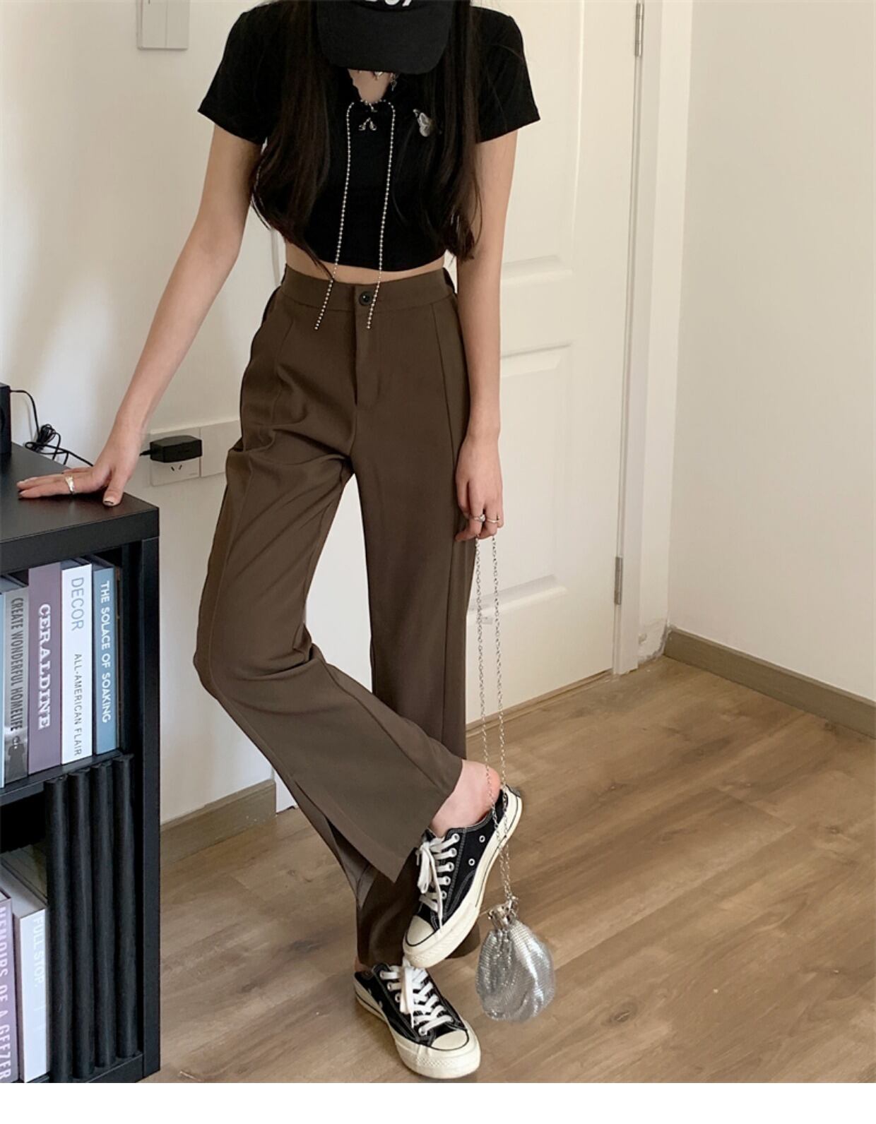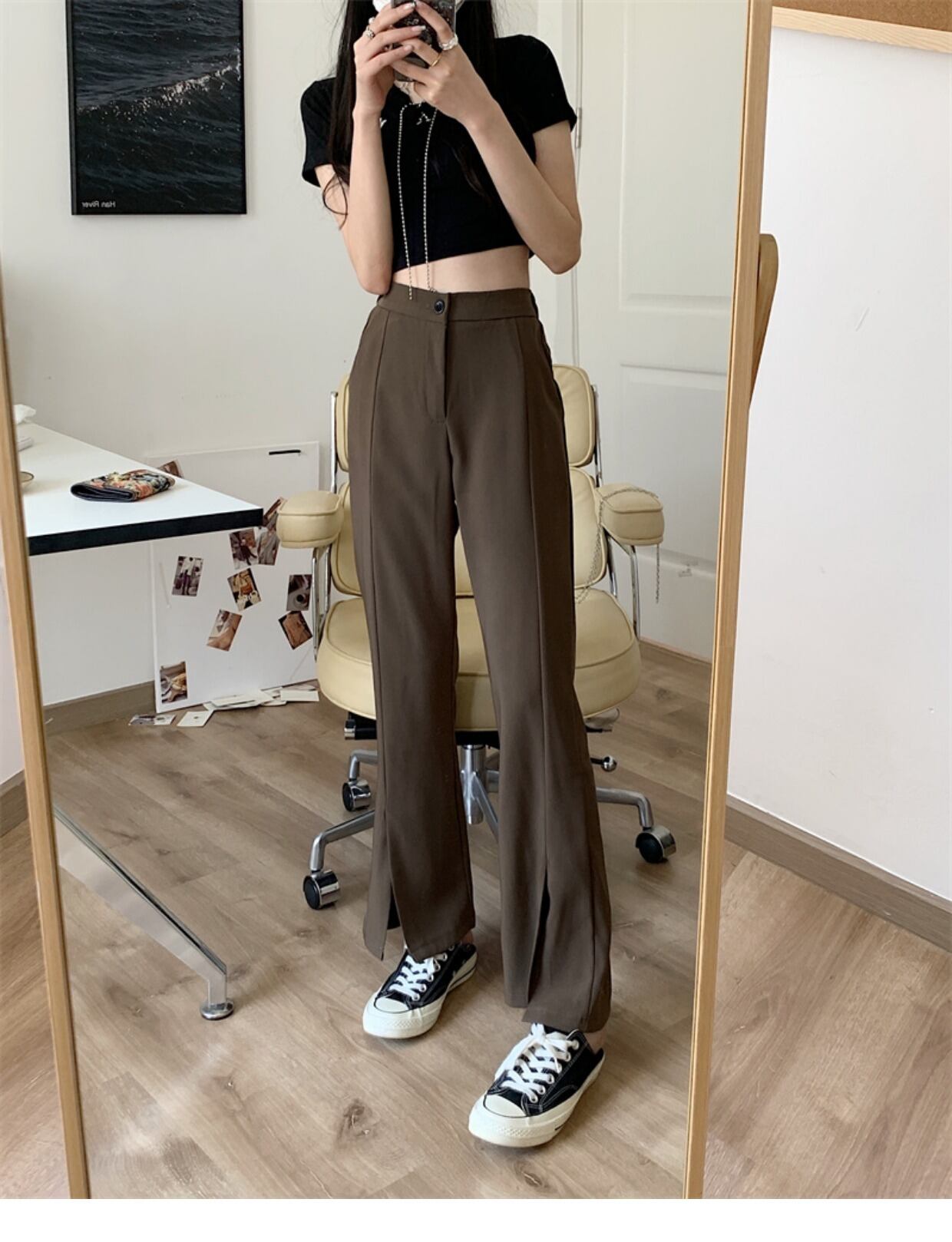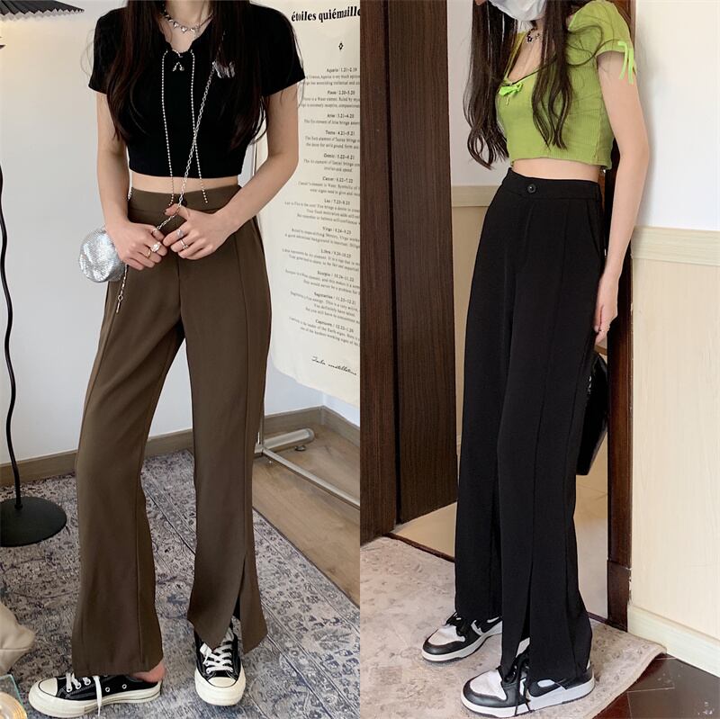 ボトムス レディース スラックス パンツ ワイドパンツ フレアパンツ スリット きれいめ シンプル 大人 上品 おしゃれ お洒落 かっこいい レトロ 大人女子 こなれ感 ラフ メンズライク マニッシュ ボーイッシュ クール 抜け感 S M L XL 黒 ブラック 茶色 ブラウン 無地 10代 20代 30代 40代 50代 ママ OL 通勤 通学 学生 お出かけ 休日 イベント 旅行 定番 美脚 脚長 着回し 普段使い 韓国 オルチャン