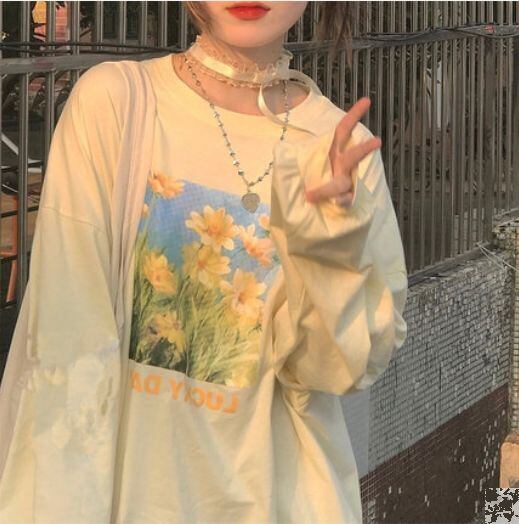 トップス レディース 長袖Tシャツ ロンT 白T 白トップス プルオーバー 袖あり 長袖 ドロップショルダー フォトT ラウンドネック かわいい シンプル カジュアル おしゃれ お洒落 レトロ インスタ映え こなれ感 ラフ キュート 存在感 抜け感 M L XL 白 ホワイト 花柄 黄色 イエロー 春 秋 10代 20代 30代 40代 50代 ママ 学生 通学 お出かけ 公園デビュー お泊り 休日 アウトドア イベント 旅行 プレゼント ギフト 定番 流行 体型カバー モテ 着回し 普段使い 重ね着