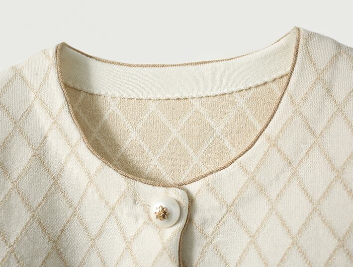 カーディガン レディース トップス M L ホワイト 白 ダイヤ柄 クロス 大人カラー ニュアンスカラー ニット クルーネック ポケット フロントボタン 前開き 秋 冬 長袖 ショート丈 スリム 細身 コンパクト ママ フェミニン ナチュラル カジュアル きれいめ きれカジ モテ キュート ガーリー 大人 大人可愛い こなれ感 ぬけ感 シンプル デート 休日 お出かけ 定番 万能 着回し 王道 学生 通学 存在感 主役級 韓国 オルチャン 上品 エレガント 華やか お呼ばれ 女子会 シック きちんと感