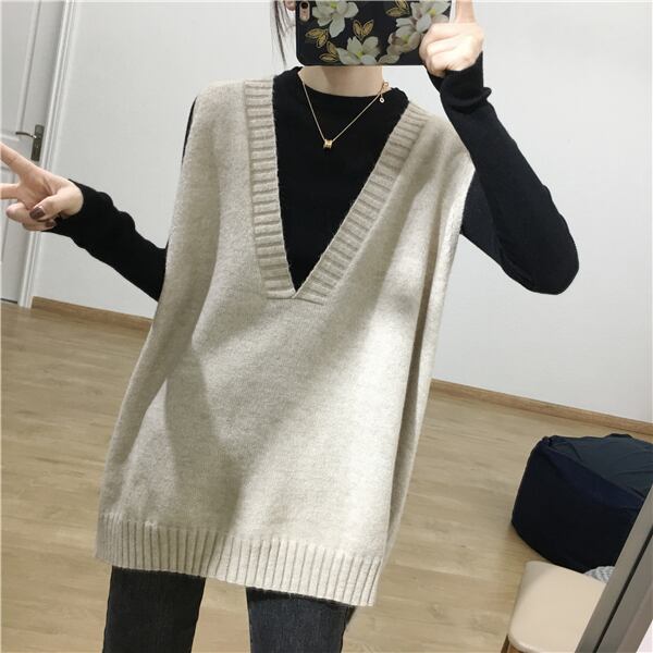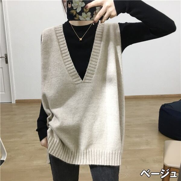ベスト レディース トップス ニットベスト ニットトップス ワンサイズ フリーサイズ ブラック 黒 ベージュ ダークグレー 灰色 ブラウン 茶色 大人カラー くすみカラー 秋カラー 無地 Vネック 深Vネック ルーズ ゆったり ゆる カジュアル ナチュラル きれいめ きれカジ レトロ 大人 大人可愛い お出かけ 休日 着回し 定番 万能 王道 シンプル ベーシック 存在感 主役級 学生 通学 韓国 オルチャン 体型カバー 着やせ ママ マニッシュ メンズライク ボーイッシュ 防寒 リラックス ルームウェア