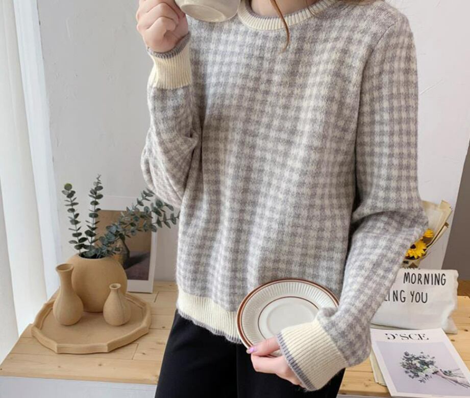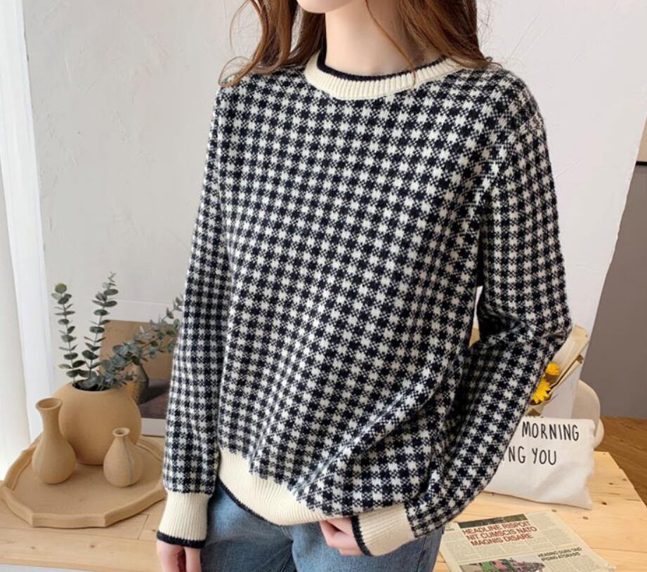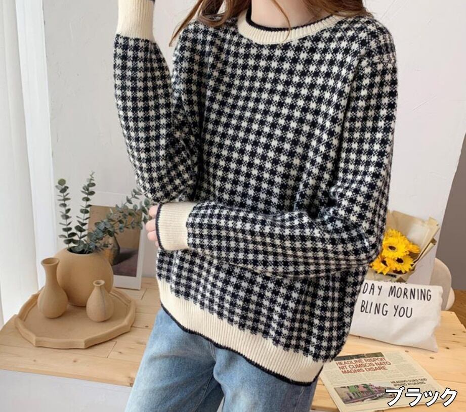 ニット レディース トップス セーター プルオーバー ニットトップス S M L XL 2XL ブラック 黒 グレー 灰色 イエロー 黄色 レッド 赤 大人カラー くすみカラー 秋カラー チェック 千鳥 秋 冬 リブ 長袖 クルーネック ショート丈 ストレート ママ フェミニン ナチュラル カジュアル きれいめ きれカジ 大人 大人可愛い こなれ感 ぬけ感 休日 お出かけ デート モテ キュート ガーリー シンプル ベーシック デイリー 定番 万能 着回し こなれ感 ぬけ感 学生 通学 韓国 オルチャン