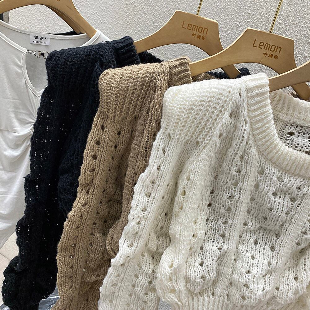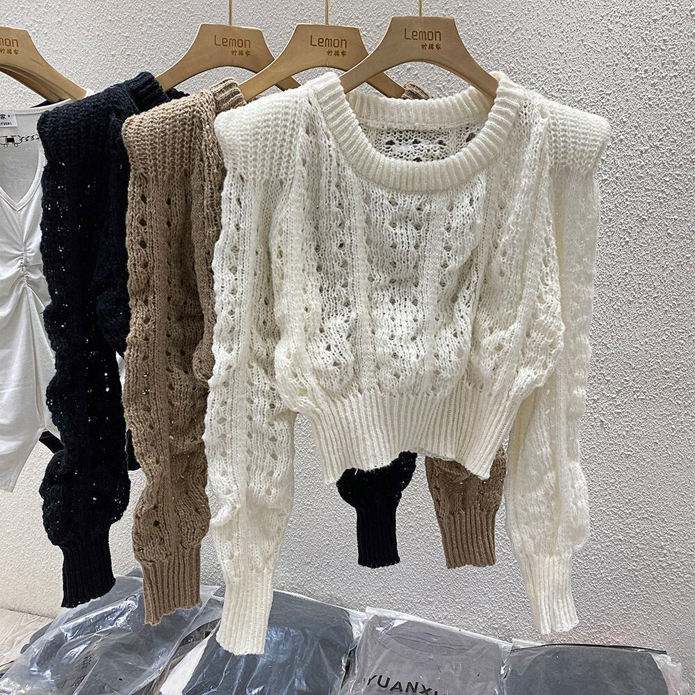 トップス ニット 透け感 3色 レディース 肩パッド ゆったり 大きめ ショート丈 長袖 きれいめ エレガント 上品 清楚 シンプル カジュアル 体型カバー 細見え 着痩せ 秋 冬 春 かわいい 大人可愛い ガーリー フェミニン オシャレ お洒落 デート モテ 女子会 ゆる こなれ感 休日 お出かけ ショッピング 10代 20代 30代 40代 ルーズ ゆる 韓国 トレンド 流行 着心地 学生 春 秋 冬 無地 ホワイト 白 黒 ブラウン ブラック 重ね着 薄手 伸縮性 メッシュ パフスリーブ 着回し