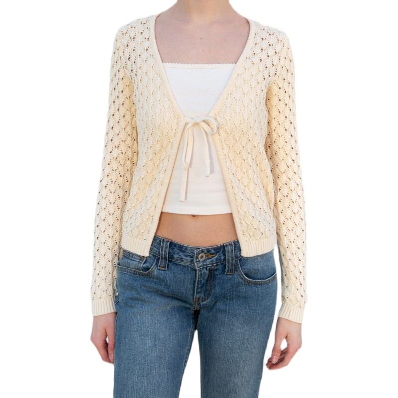 トップス カーディガン レディース クロシェ レース ショート丈 袖あり 長袖 リボン Vネック 透け感 大人可愛い きれいめ シンプル 大人 上品 おしゃれ お洒落 レトロ 大人女子 キュート ガーリー エレガント 存在感 ワンサイズ フリーサイズ アイボリー 無地 春 夏 秋 10代 20代 30代 40代 ママ 学生 通学 デート お出かけ 女子会 休日 イベント 旅行 プレゼント ギフト 定番 着回し 普段使い 重ね着 韓国 オルチャン