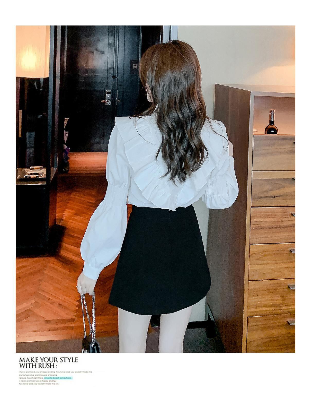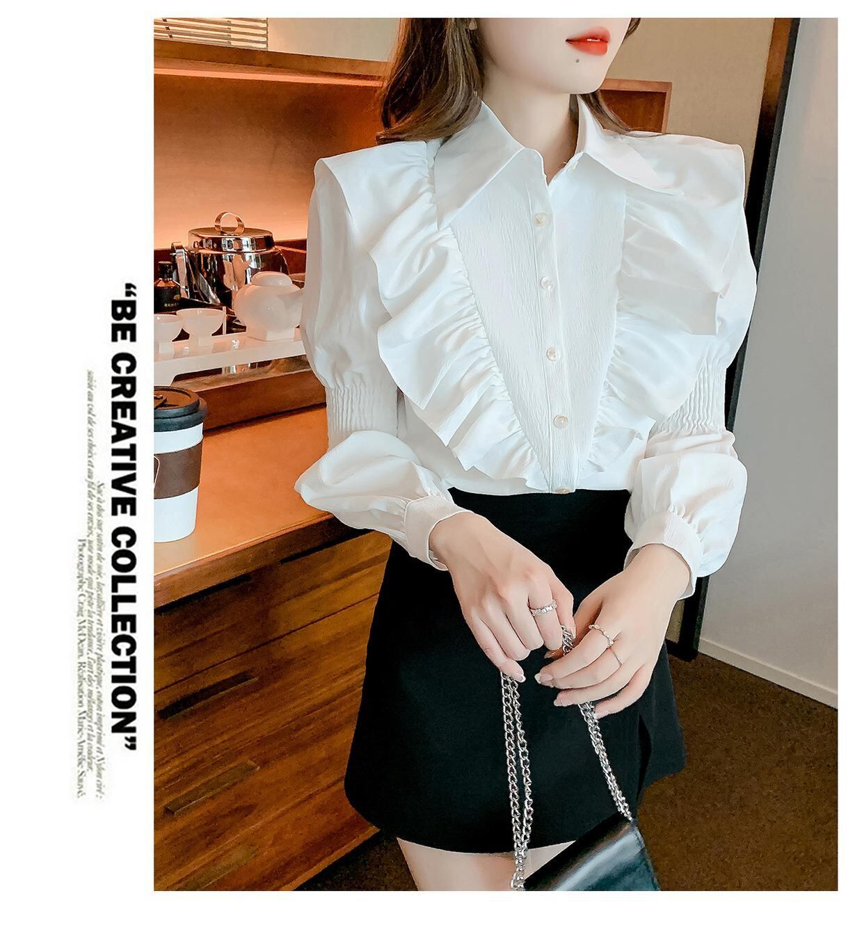 取り外し可能なハートのメタルトップがキュートな長袖フリルブラウス。