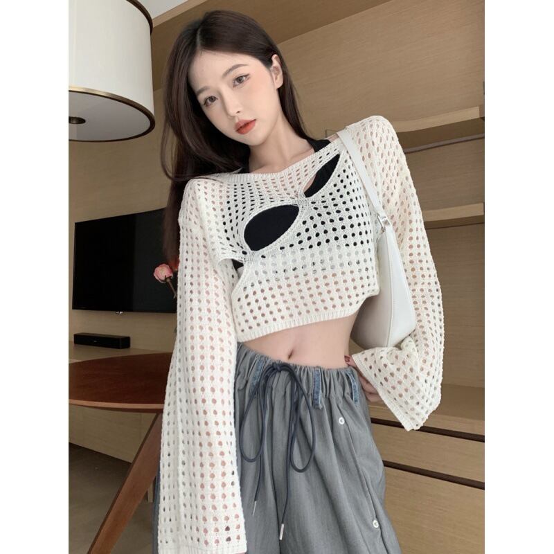 トップス レディース カットソー ニット プルオーバー ニットソー ショート丈 長袖 ドロップショルダー ボートネック ワイド アシンメトリー 透け感 かわいい おしゃれ お洒落 かっこいい こなれ感 ガーリー 個性的 クール モード系 セクシー モダン 主役級 存在感 抜け感 ワンサイズ フリーサイズ 白 ホワイト アイボリー 無地 春 秋 夏 10代 20代 30代 学生 通学 デート お出かけ 女子会 休日 アウトドア パーティー イベント リゾート 旅行 海 プール モテ 穴あき 重ね着
