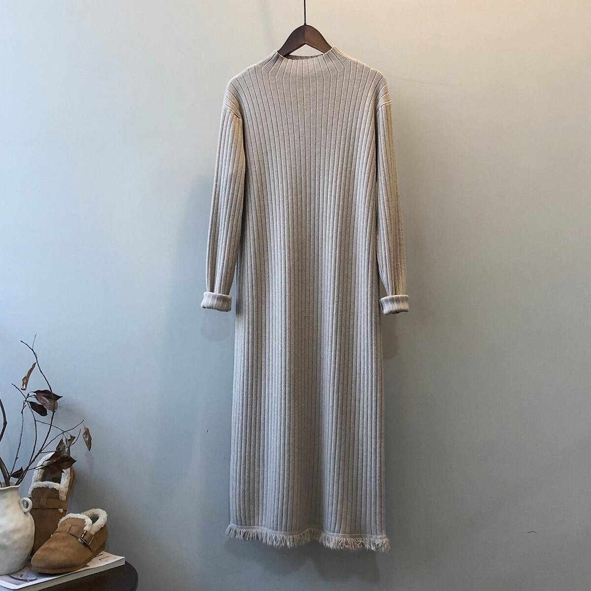 ワンピース レディース リブニットワンピース ハイネック ミモレ丈 ロング丈 長袖 袖あり ハイネック Iライン ストレート 裾フリンジ 大人可愛い きれいめ シンプル おしゃれ お洒落 大人 上品 大人女子 こなれ感 エレガント クール 存在感 抜け感 フリーサイズ ワンサイズ アイボリー 黒 ブラック グレージュ 灰色 無地 春 秋 冬 20代 30代 40代 50代 ママ 学生 通学 デート お出かけ 女子会 休日 旅行 イベント 定番 プレゼント ギフト モテ 普段使い 重ね着 韓国 オルチャン