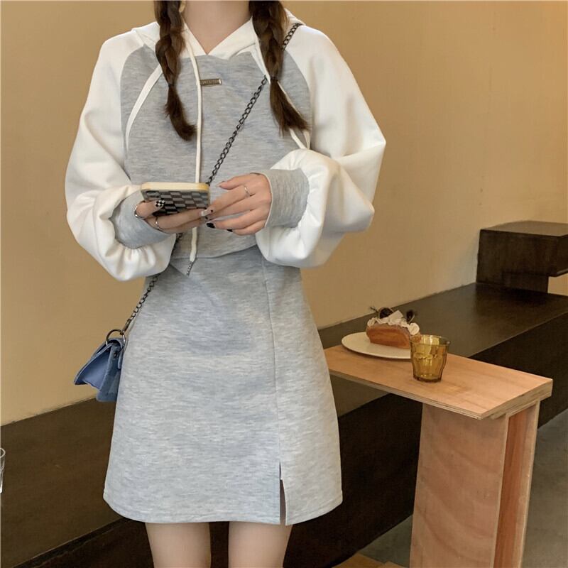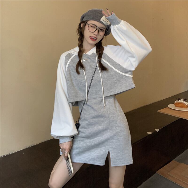 セットアップ 上下セット パーカー キャミワンピース フード付き 長袖 レディース ミニ丈 ショート丈 2点セット お得 お買い得 かわいい 大人可愛い 韓国 トレンド 流行 10代 20代 30代 着回し 重ね着 大きいサイズ S М L XL 2XL グレー 灰色 ホワイト 白 バイカラー 女子会 デート モテ スポーティー セクシー ショッピング お出かけ スリット 脚長 美脚 スタイルアップ 体型カバー 着痩せ 細見え 春 秋 冬 新作 韓国 トレンド 流行 映え SNS ゆったり ゆる ルーズ