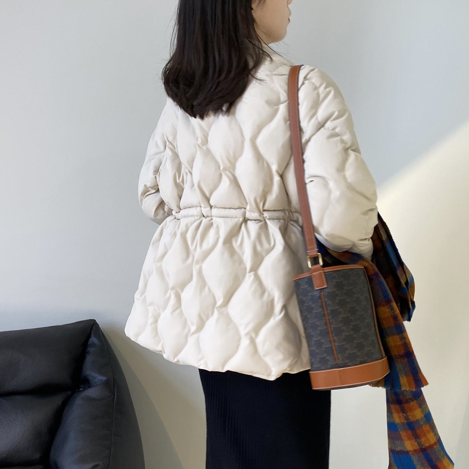 アウター レディース ブルゾン ジャケット 中綿 ダウンジャケット ダウンコート 長袖 ふわふわ もこもこ モコモコ ファスナー ジップアップ ポケット 前開き ウエストマーク ドロストデザイン ダイヤ柄 大人可愛い きれいめ シンプル カジュアル 大人 上品 おしゃれ お洒落 かっこいい 大人女子 こなれ感 ラフ 抜け感 M L ベージュ 黒 ブラック 無地 冬 10代 20代 30代 40代 50代 60代 ママ 通勤 通学 学生 OL お出かけ 公園デビュー 旅行 アウトドア 防寒 暖かい 防風