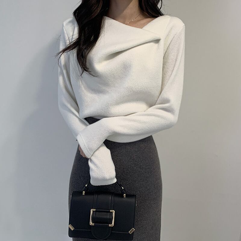 トップス レディース セーター ニット 長袖 アシンメトリー ボートネック風 かわいい 大人可愛い きれいめ 大人 上品 おしゃれ お洒落 大人女子 こなれ感 エレガント 存在感 とろみ感 抜け感 ワンサイズ フリーサイズ 白 ホワイト グレージュ ベージュ グレー 灰色 青 ブルー 無地 春 秋 冬 10代 20代 30代 40代 50代 ママ オフィス ビジネス OL 通勤 通学 学生 デート お出かけ 女子会 休日 旅行 モテ 普段使い 韓国 オルチャン 暖かい あったか