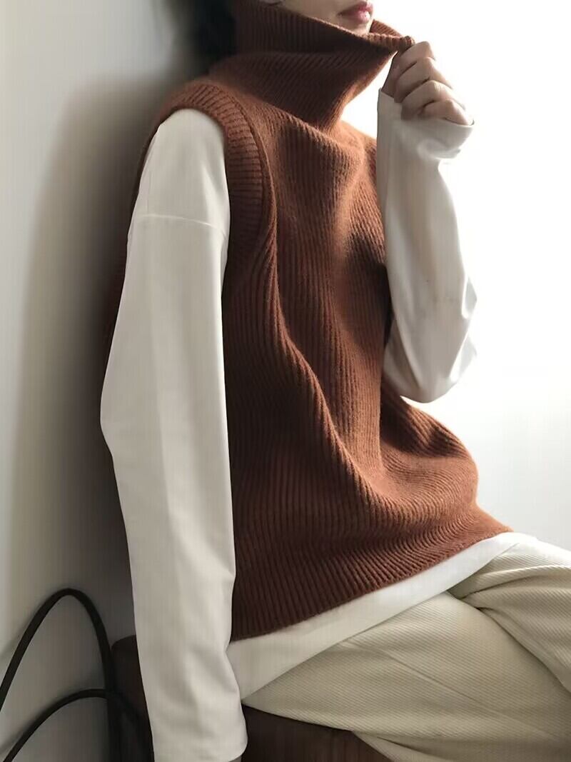 トップス レディース ノースリーブセーター ニットベスト タートルネック 袖なし リブニット プルオーバー 大人可愛い きれいめ シンプル カジュアル 大人 上品 おしゃれ お洒落 かっこいい 大人女子 こなれ感 ラフ 抜け感 存在感 カラバリ ワンサイズ フリーサイズ グレー 灰色 キャラメル コーヒー 茶色 黒 ブラック アイボリー オフホワイト 白 レッド 赤 ブルーグリーン 青緑 無地 春 秋 冬 男女兼用 オフィス ビジネス OL 通勤 学生 通学 お出かけ 旅行 体型カバー 重ね着 レイヤード