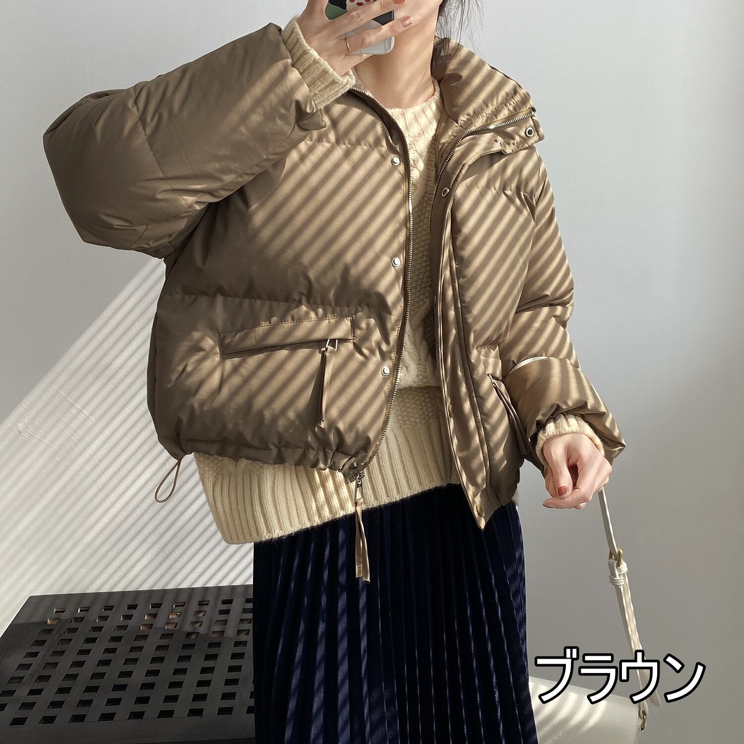 アウター 中綿 ジャケット 3色 レディース ショート丈 コート ダウン シンプル カジュアル ラフ 長袖 ファスナー 暖かい あったか 防寒 冷え性 オシャレ お洒落 かわいい 大人かわいい 通勤 ОL お出かけ 買い物 20代 30代 40代 50代 60代 ゆったり 大きめ 体型カバー 着痩せ 細見え 無地 ベージュ ブラウン 茶色 黒 ブラック ハイネック ボリューム 新作 2022 冬 定番 王道 きれいめ 上品 高級感 ボタン ポケット キルティング М L すっきり スタイルアップ
