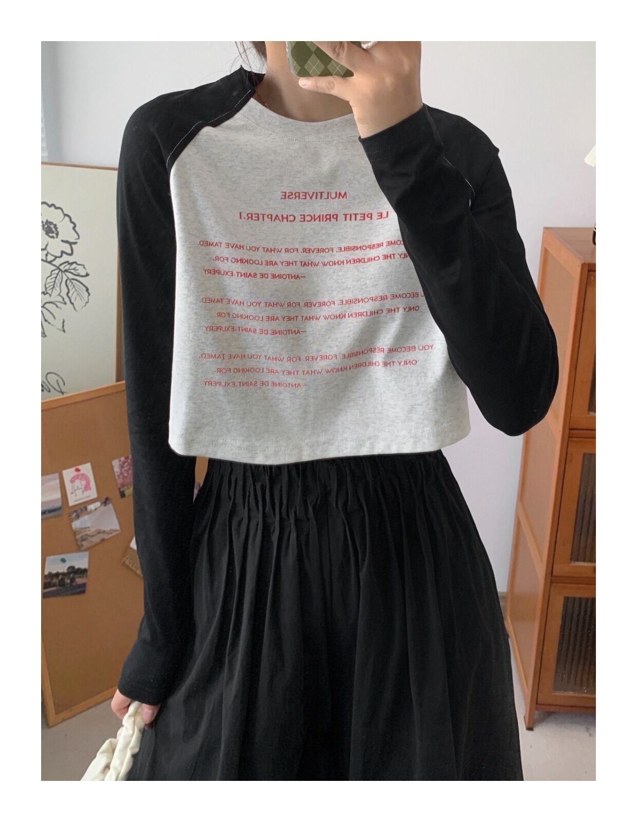 トップス Tシャツ シャツ カットソー ショート丈 長袖 レディース プリント ロゴ シンプル カジュアル ラフ 無地 ブラック 黒 グレー 灰色 ルーズ ゆる リラックス 部屋着 ルームウェア 10代 20代 30代 40代 春 秋 冬 お洒落 オシャレ かわいい 大人可愛い 大きめ 学生 クール かっこいい 薄手 ラウンドネック 新作 2022 タイト スリム 細身 脚長 スタイルアップ 英字 抜け感 こなれ感 ラフ S М L バイカラー ストレート Iライン 個性的 個性派 楽ちん