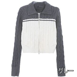 トップス ニット ジップアップ 3色 バイカラー ショート丈 レディース オシャレ お洒落 かわいい 大人可愛い 10代 20代 30代 40代 着回し 重ね着 シンプル カジュアル ラフ グレー 灰色 ネイビー 紺 ブラウン 茶色 くすみカラー 春 秋 冬 抜け感 こなれ感 ショッピング レトロ アンティーク ヴィンテージ 柔らか 着心地 あったか 暖かい ゆる ルーズ 体型カバー 脚長 スタイルアップ 新作 2022 襟付き アウター リブニット ジャケット ダブルジッパー