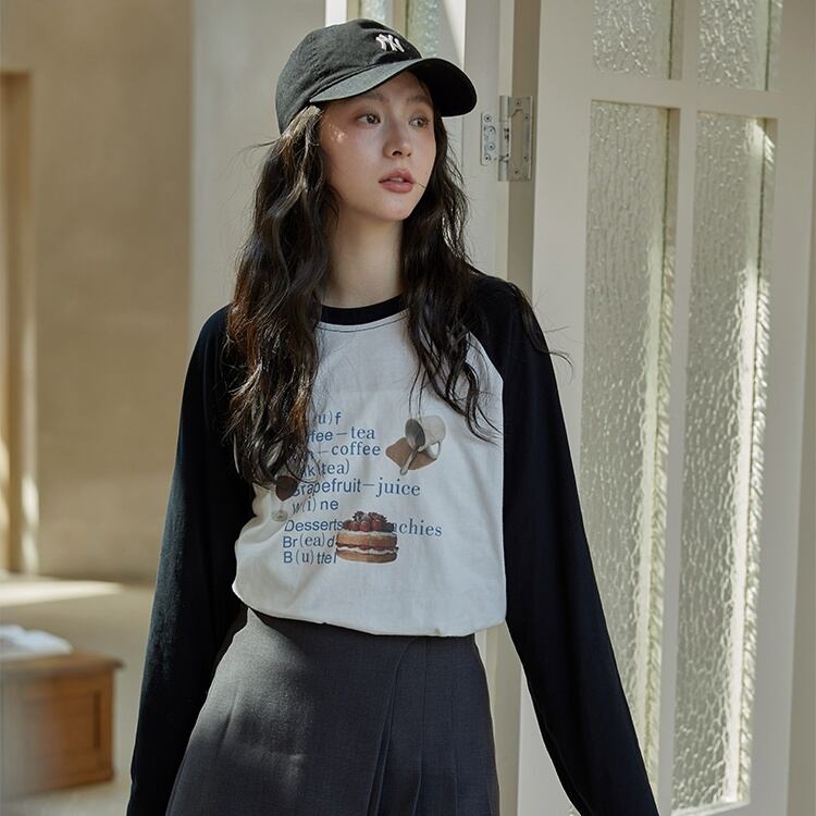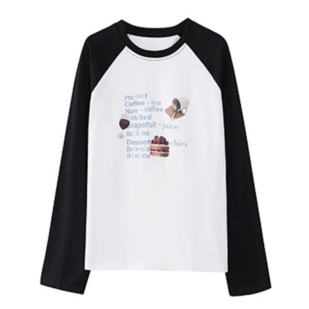 トップス Tシャツ シャツ カットソー プリント 長袖 レディース ロゴ シンプル カジュアル ラフ 無地 ブラック 黒 ルーズ ゆる リラックス 部屋着 ルームウェア 10代 20代 30代 40代 春 秋 冬 お洒落 オシャレ かわいい 大人可愛い 大きめ 学生 クール かっこいい 薄手 ラウンドネック 新作 2022 タイト スリム 細身 脚長 スタイルアップ 英字 抜け感 こなれ感 ラフ バイカラー ストレート Iライン 個性的 個性派 楽ちん ケーキ カフェ 萌え袖 ロング丈