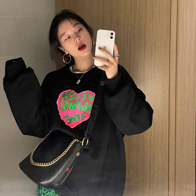 オーバーシルエットのスウェットはルーズでこなれた雰囲気をプラス