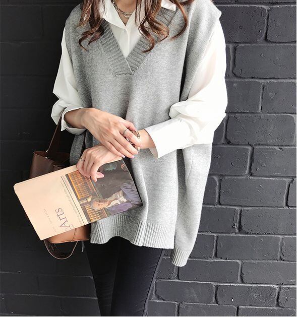 4色カラバリVネックニットベスト。