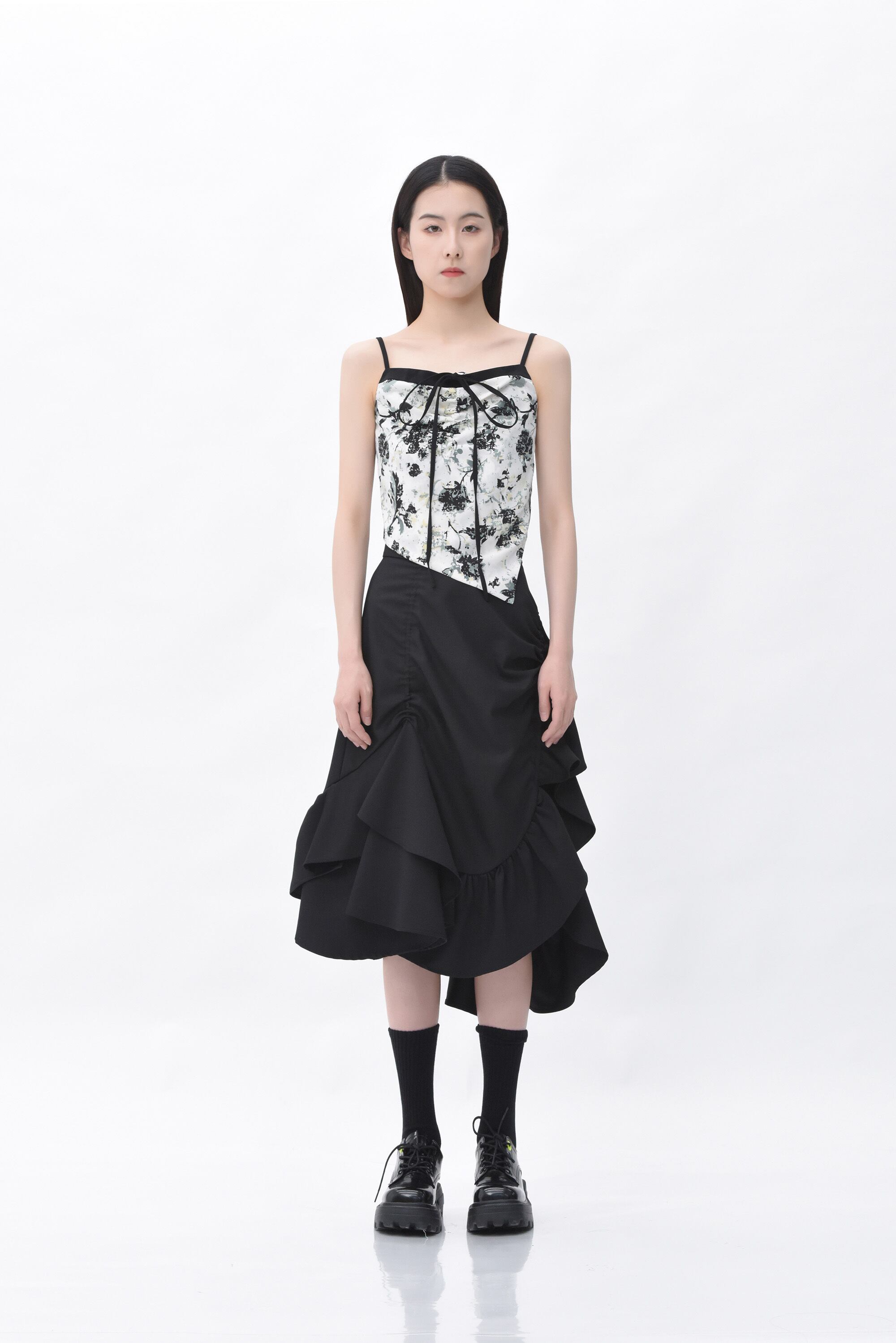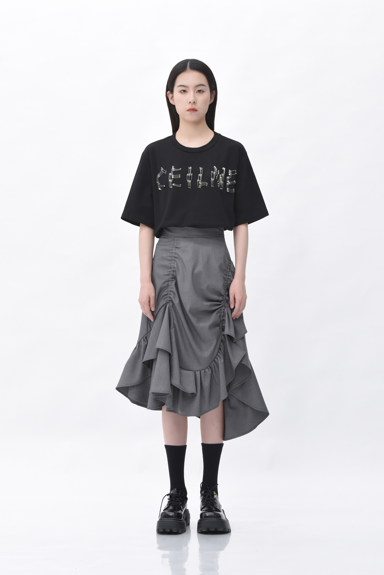 スカート ロングスカート アシンメトリー フリル ギャザー レディース Aライン ふんわり ロング丈 ミモレ丈 ボリューム 個性派 個性的 オシャレ お洒落 大人可愛い 上品 ゴージャス パンク ロック クール ゴシック 無地 ブラック 黒 グレー 灰色 ハイウエスト 脚長 美脚 スタイルアップ 小さいサイズ XS S М L ウエストゴム 楽ちん 映え SNS 写真 春 夏 秋 冬オールシーズン 20代 30代 40代 普段使い 普段着 ショッピング お出かけ シック モード 主役 存在感 高級感