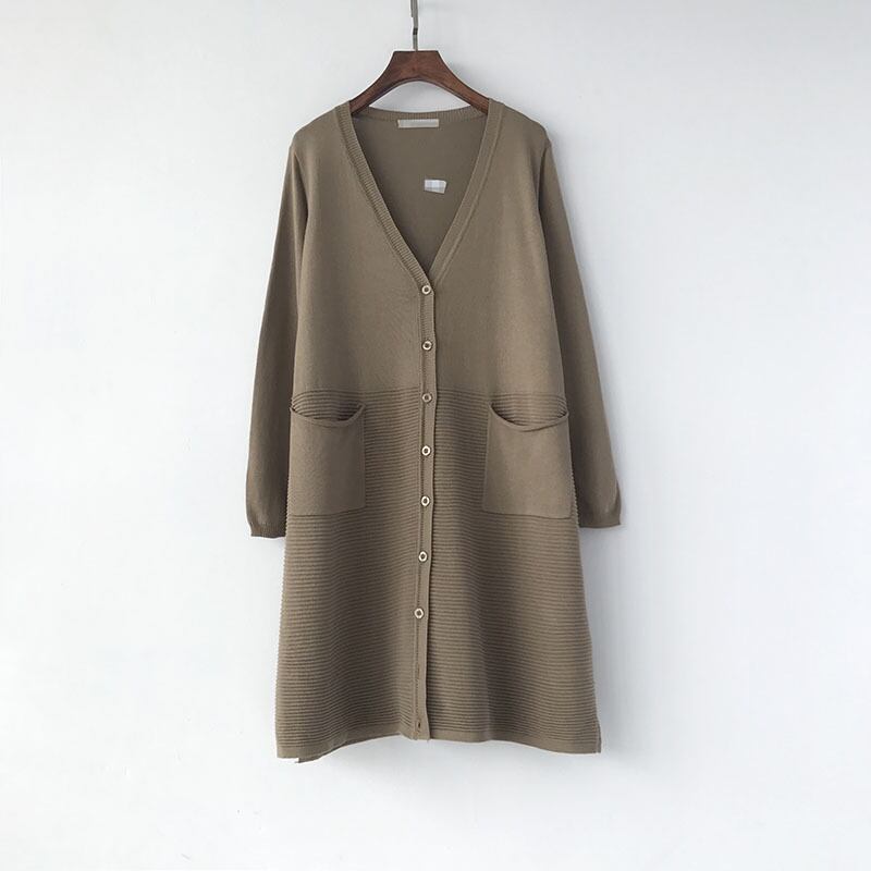 5色カラバリ、Vネック長袖ニットロングカーディガン。