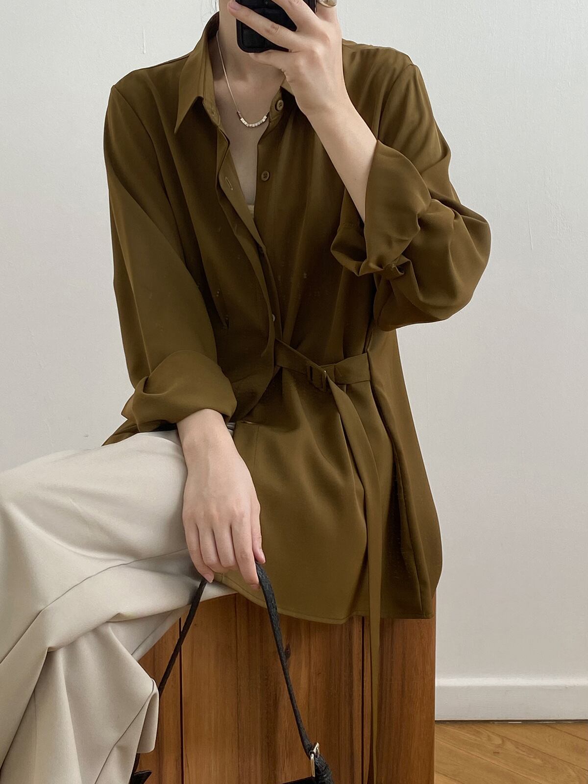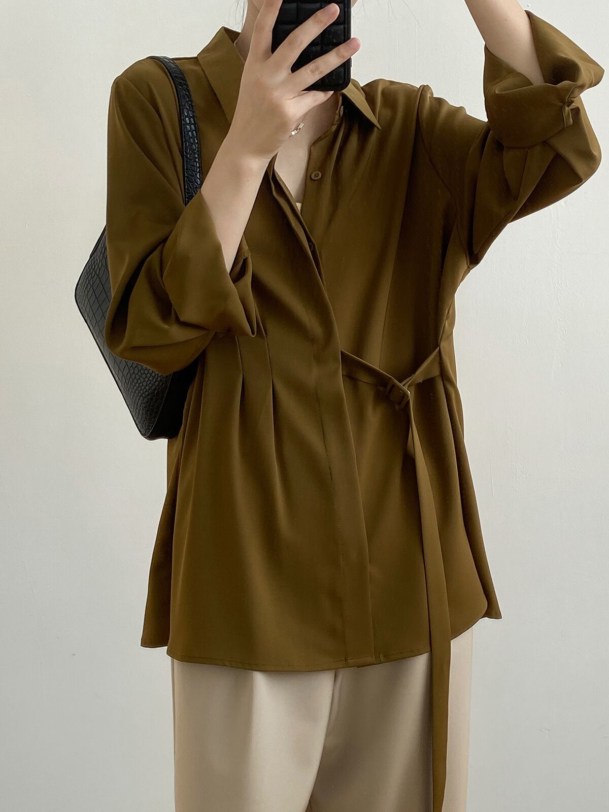 トップス ブラウス シャツ 3色 サイドベルト 襟付き 長袖 ゆったり レディース きれいめ 上品 エレガント お洒落 オシャレ かわいい 大人可愛い 20代 30代 40代 50代 ОL 通勤 仕事 オフィス シンプル カジュアル 春 秋 夏 冬 オールシーズン こなれ感 休日 お出かけ 女子会 韓国 トレンド 流行 Iライン ストレート 柔らか 着心地 無地 ホワイト 白 ブラック 黒 ブラウン 茶色 薄手 抜け感 知的 美人 清潔感 清楚 着回し М L 前開き ボタン 体型カバー 着痩せ ルーズ