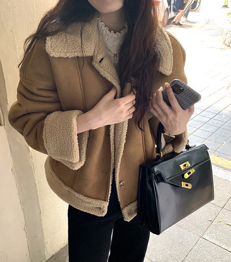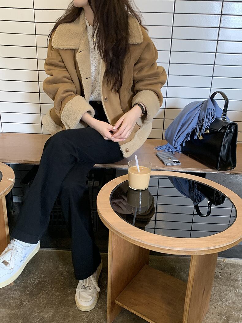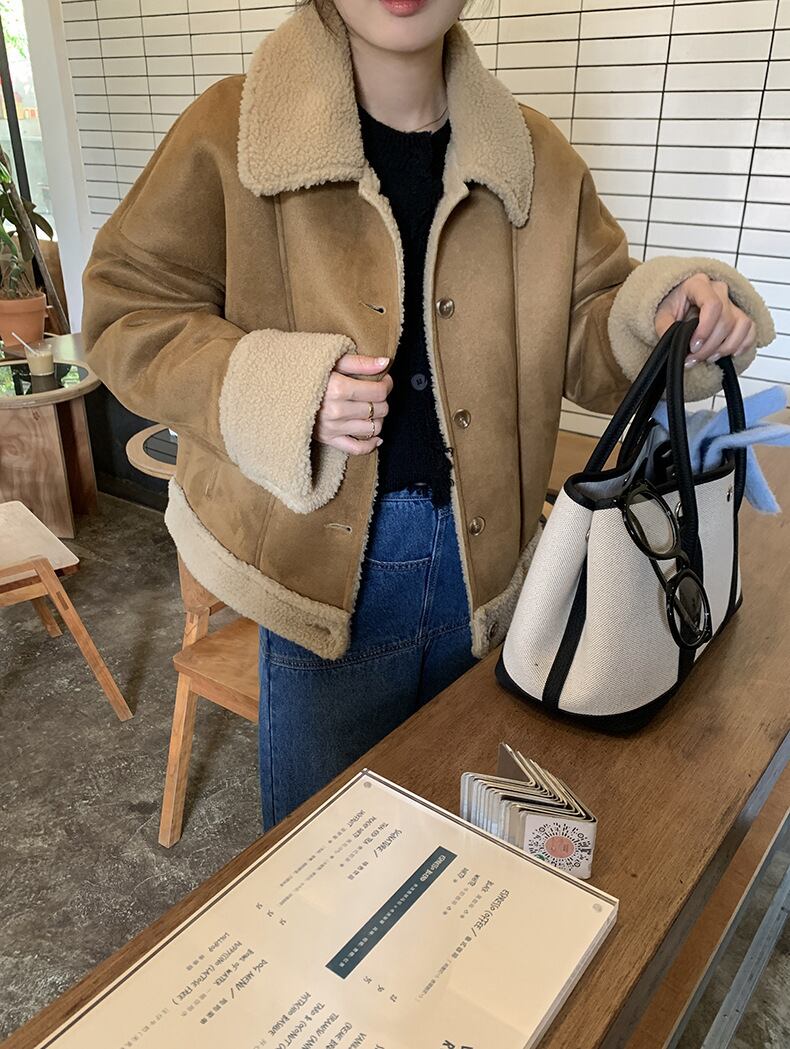 アウター ジャケット ムートン 裏ボア レディース 長袖 エレガント 上品 きれいめ 高級感 かわいい 大人可愛い オシャレ お洒落 シンプル カジュアル モダン シック トレンド 韓国 流行 春 秋 冬 前開き ボタン ポケット ブラウン 茶色 くすみカラー ОL 仕事 通勤 普段使い 普段着 女子会 モテ デート 20代 30代 40代 50代 定番 王道 コート こなれ感 暖かい 防寒 あったか ドロップショルダー ゆる ルーズ 大きめ ゆったり 体型カバー 着痩せ 襟付き ビッグカラー 新作