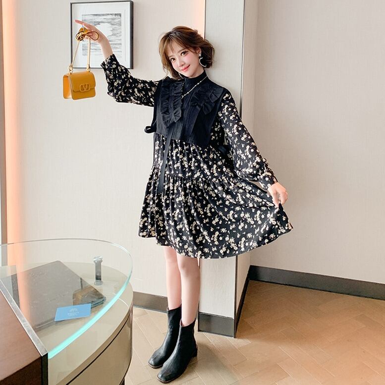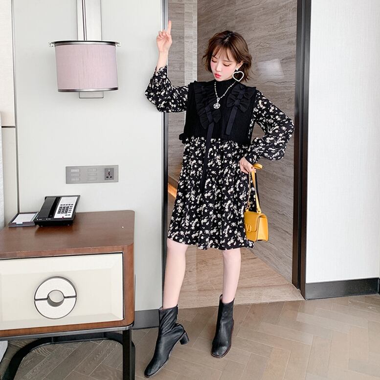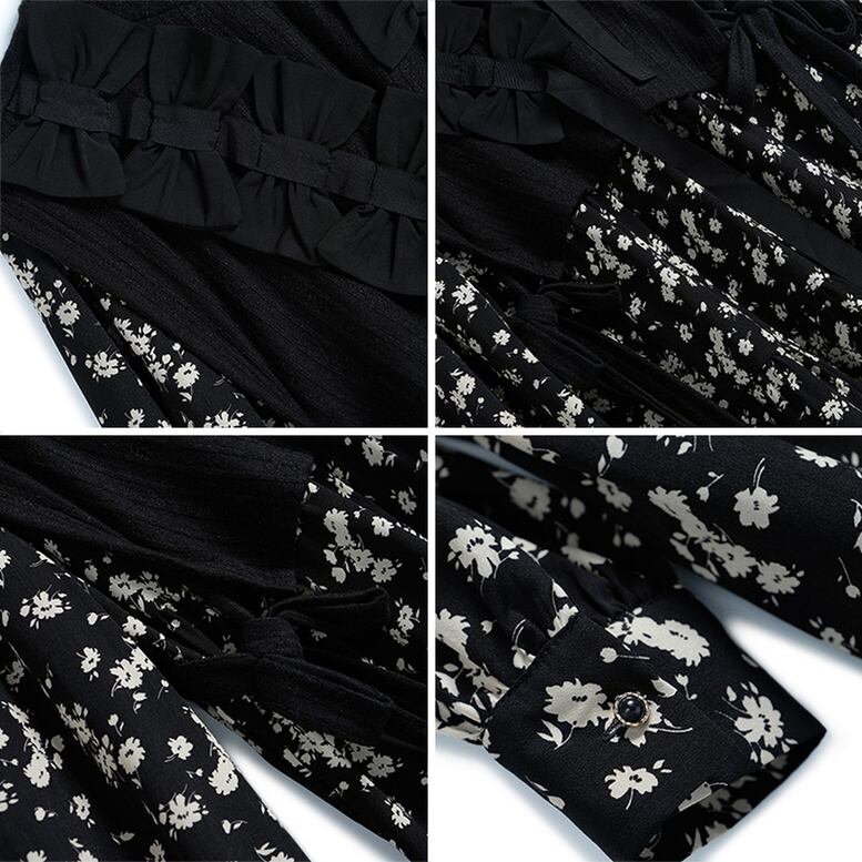 セットアップ ワンピースセットアップ レディース 2点セット 上下セット ツーピース 重ね着 レイヤード リボン付きニットベスト 花柄フレアワンピース ひざ丈 バルーンスリーブ 長袖 ショートベスト フェミニン 黒 ブラック 大人可愛い きれいめ 上品 エレガント フォーマル ガーリー ボタニカル フラワー 春 夏 秋 冬 二次会 お呼ばれ オフィス OL 通勤 学生 通学 デート お出かけ パーティー イベント 女子会 休日 体型カバー 普段使い 定番 トレンド オーバーサイズ ゆったり インスタ映え