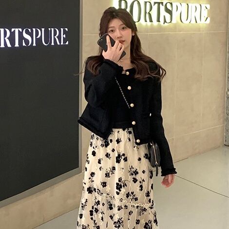 モノクロのフラワー刺繍が、エレガントで高級感のあるデザイン。