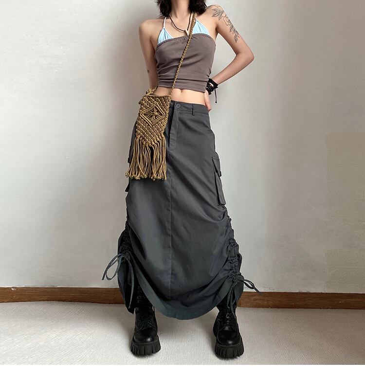 サイドのドローストリングがおしゃれなロングスカートです。