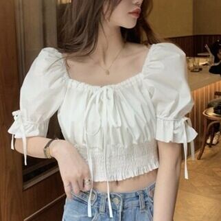 トップス ブラウス カットソー スクエアネック パフスリーブ フリル リボン 半袖 レディース ショート丈 きれいめ 上品 清楚 清潔感 エレガント お洒落 オシャレ フェミニン ガーリー フェアリー かわいい 大人可愛い 20代 30代 40代 10代 シンプル カジュアル 春 夏 こなれ感 休日 お出かけ 買い物 女子会 韓国 トレンド 流行 ホワイト 無地 デコルテ 鎖骨 華奢 薄手 着回し 重ね着 大きめ 大きいサイズ S М L XL 2XL 脚長 美脚 オフショルダー 2way ギャザー