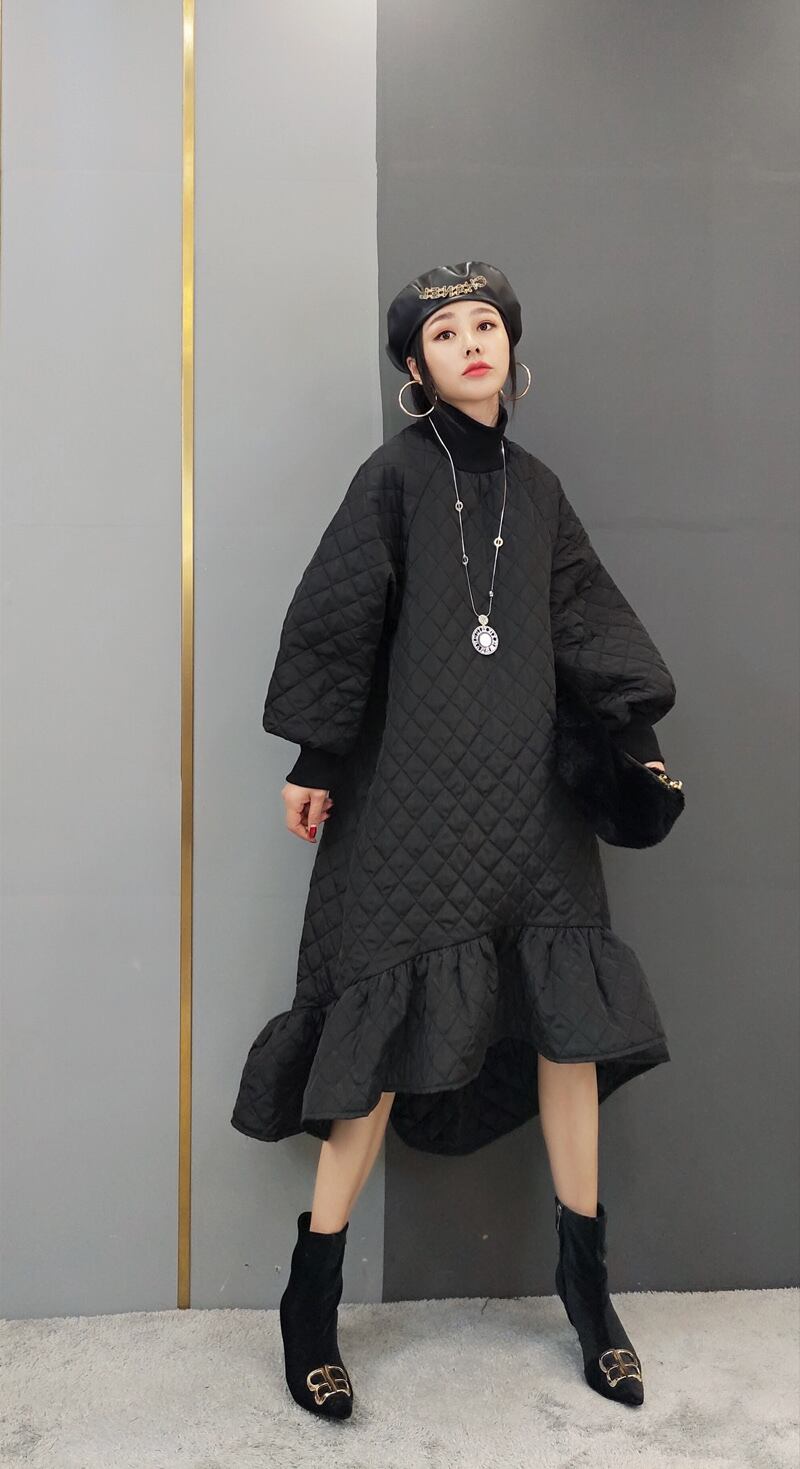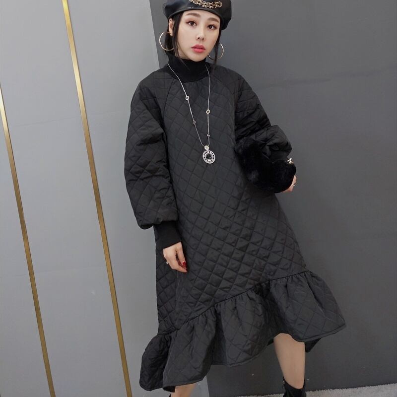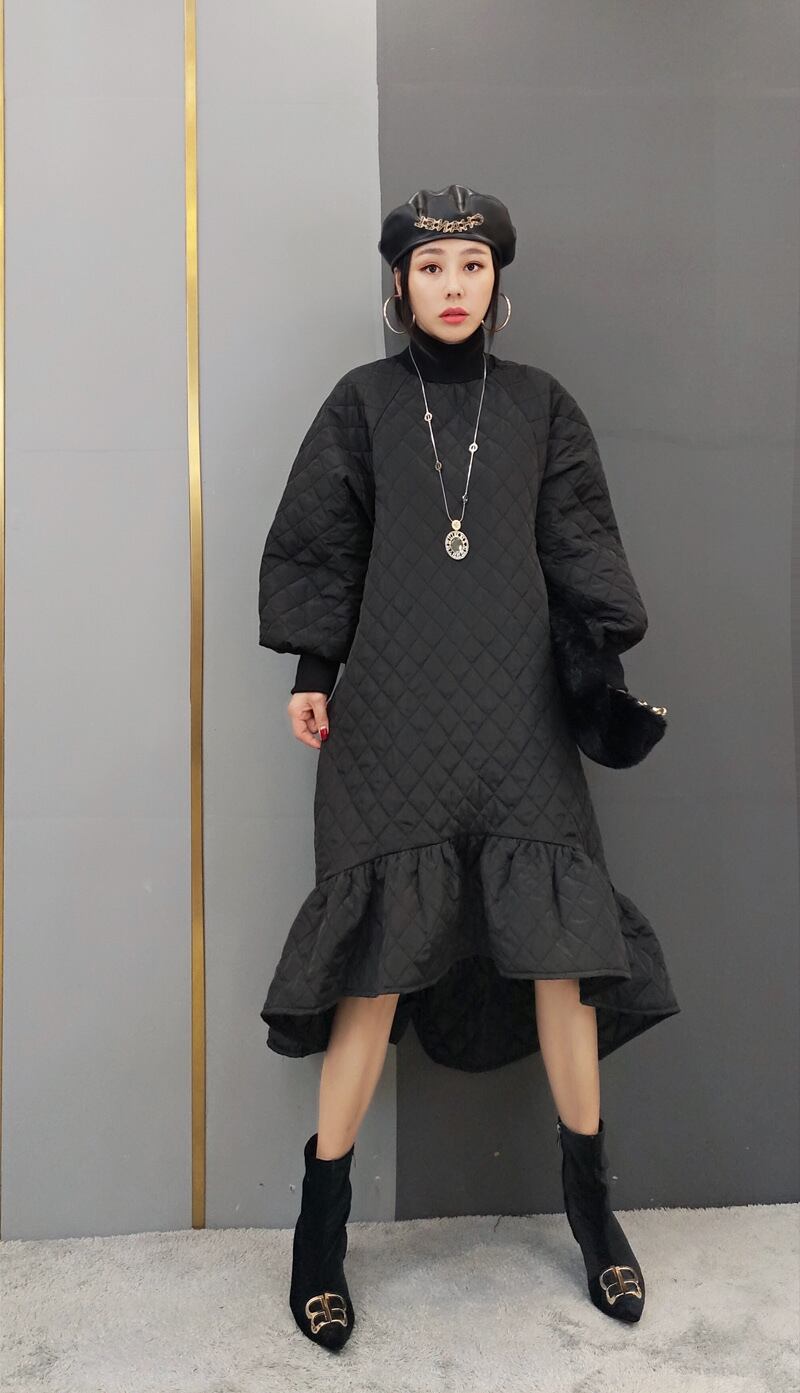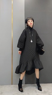 ワンピース キルティング フィッシュテール ハイネック レディース フリル 長袖 オシャレ お洒落 個性的 個性派 シック モード かわいい 大人可愛い 20代 30代 40代 カジュアル ラフ ブラック 黒 華奢 細見え ゆったり 大きめ 春 秋 冬 抜け感 こなれ感 ショッピング レトロ ヴィンテージ アンティーク 主役 存在感 ボリューム ゆる ルーズ 体型カバー こなれ感 トレンド 韓国 流行 新作 2022 S М L ふんわり ガーリー 無地 あったか 暖かい エレガント 高級感 高見え