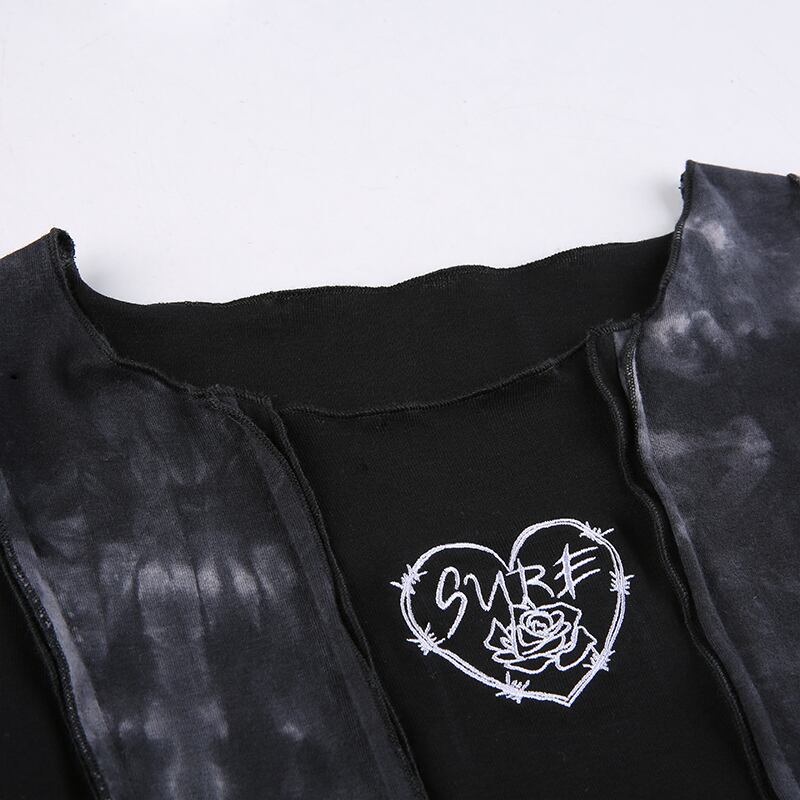 トップス カットソー アームカバー付き 切り替え タイダイ 半袖 レディース ハート ショート丈 タイト スリム 細身 セクシー 肌見せ シンプル カジュアル 秋 冬 春 かわいい 大人可愛い オシャレ お洒落 デート モテ 女子会 こなれ感 休日 お出かけ ショッピング 10代 20代 30代 韓国 トレンド 流行 学生 グレー 灰色 黒 ブラック ラウンドネック 脚長 美脚 セクシー スタイルアップ 新作 2021 伸縮性 2点セット 今風 薄手 ギャル アームウォーマー S М L
