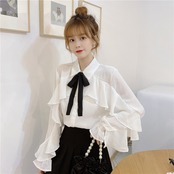 トップス 白シャツ ブラウス 長袖 襟付き フリル リボン 2点セット ボタン 前開き ゆめかわ 透け感 シフォン シースルー かわいい きれいめ おしゃれ お洒落 レトロ ラブリー キュート ガーリー 個性的 エレガント 主役級 存在感 とろみ感 ワンサイズ フリーサイズ 白 ホワイト 無地 春 秋 10代 20代 30代 学生 デート お出かけ 休日 パーティー イベント 旅行 プレゼント ギフト モテ 着回し 普段使い 重ね着 韓国 オルチャン