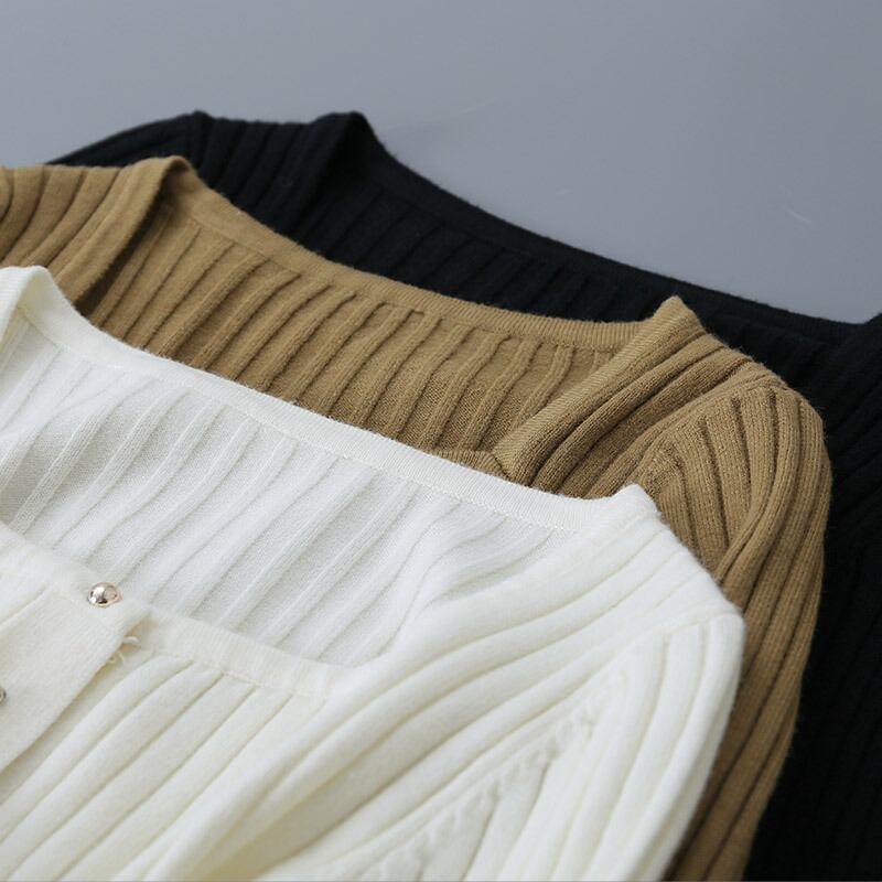 3色カラバリ、長袖リブニットカーディガン。