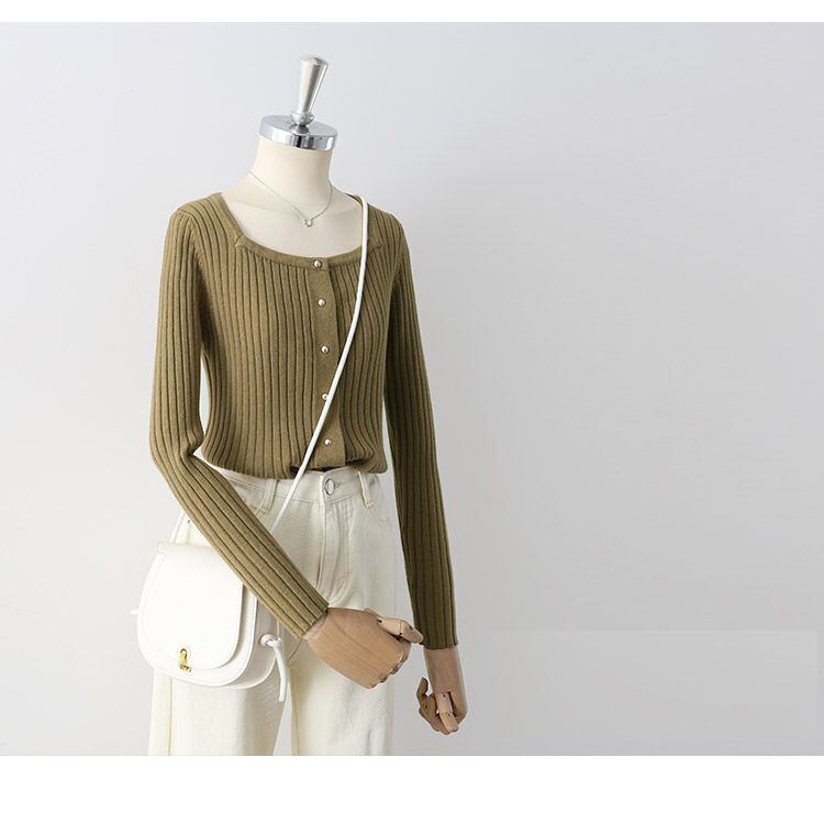 トップス レディース カーディガン 長袖 スクエアネック リブニット メタルボタン 金ボタン セーター 大人可愛い きれいめ シンプル 大人 上品 おしゃれ お洒落 かっこいい 大人女子 こなれ感 クール 抜け感 ワンサイズ フリーサイズ アイボリー 白 ホワイト 黒 ブラック カーキ 無地 春 秋 冬 10代 20代 30代 40代 50代 ママ オフィス ビジネス OL 通勤 学生 通学 デート 女子会 休日 旅行 イベント 定番 着回し 普段使い 重ね着 韓国 オルチャン