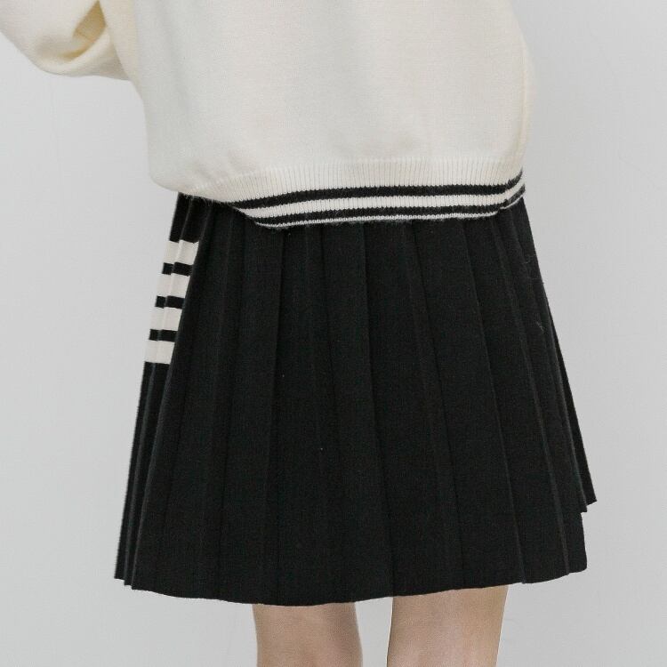 ミニスカート ニット プリーツ 2色 サイドライン Aライン レディース バイカラー ショート丈 膝上 かわいい 大人可愛い ガーリー 春 秋 冬 黒 ブラック グレー 灰色 10代 20代 30代 お洒落 オシャレ ハイウエスト 脚長 美脚 スタイルアップ カジュアル シンプル 韓国 トレンド 流行 女子会 モテ デート 映え SNS 普段使い 普段着 お出かけ 量産 地雷 タック スタイルアップ セクシー 着回し 学生 制服 スクール 前後 アシンメトリー 個性派 個性的 あったか 暖かい
