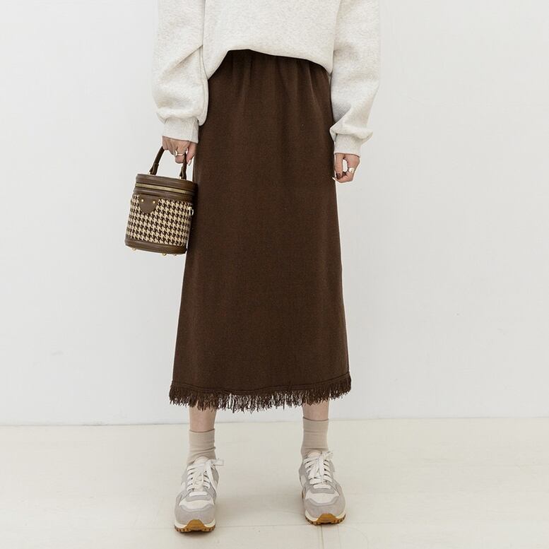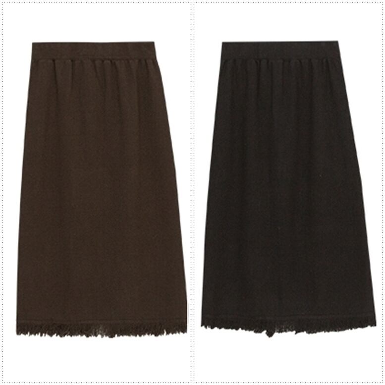 ロングスカート 裾フリンジロングニットペンシルスカート レディース スカート ニットスカート ペンシルスカート バックスリット ウエストゴム 裾フリンジ ニット ロング丈 ミモレ丈 ひざ下 茶色 黒 ブラウン ブラック ベージュ 大人可愛い きれいめ 上品 エレガント フォーマル ガーリー キュート 春 夏 秋 冬 二次会 オフィス OL 通勤 学生 通学 デート お出かけ パーティー イベント 女子会 休日 体型カバー 普段使い 定番 トレンド ゆったり インスタ映え ベイクドカラー アースカラー