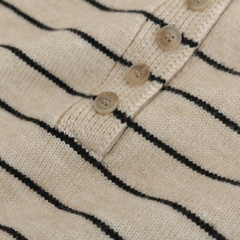 細いラインのボーダーにフロントのハーフボタンがポイント