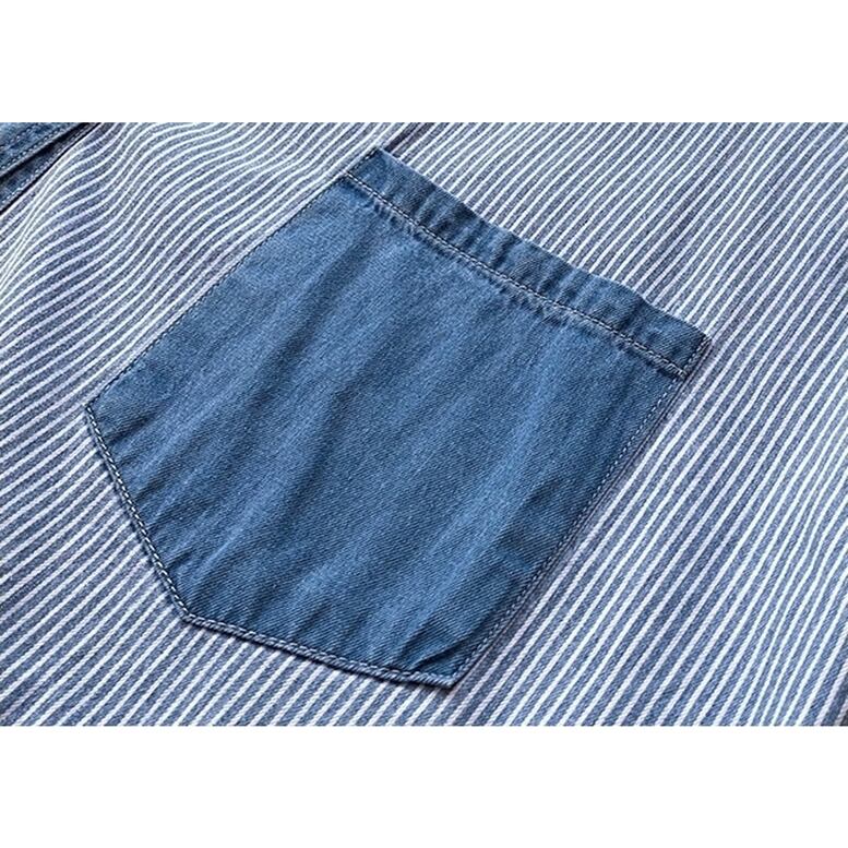 ストライプデニムシャツ トップス レディース シャツ デニムシャツ ストライプ 切り替え 襟付き 長袖 ドロップショルダー アシンメトリー 無地 ストライプ柄 オーバーシャツ デニム ブラウス 青 水色 ブルー ライトブルー 大人可愛い きれいめ 上品 ガーリー マニッシュ ルーズ キュート 春 夏 秋 冬 二次会 オフィス OL 通勤 学生 通学 デート お出かけ パーティー イベント 女子会 休日 アウトドア 体型カバー 普段使い 定番 トレンド オーバーサイズ ゆったり インスタ映え カジュアル
