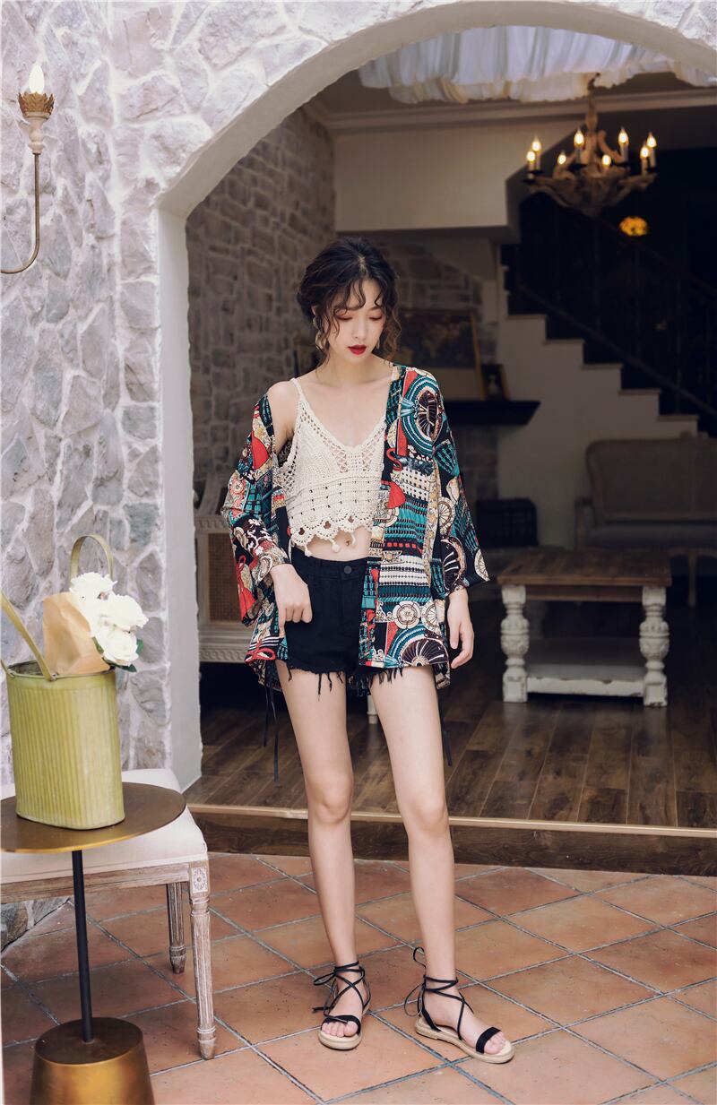 エスニック風プリントがおしゃれなカーディガンです。