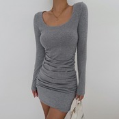 ミニワンピース ギャザータイトシャツワンピース レディース ワンピース タイトワンピース ギャザー ラウンドネック 長袖 シャツワンピース Tシャツワンピ タイト フィット スリム セクシー 茶色 黒 灰色 ブラウン ブラック グレー 春 夏 秋 冬 二次会 オフィス OL 通勤 学生 通学 デート お出かけ パーティー イベント 女子会 休日 体型カバー 美脚 普段使い 定番 トレンド ゆったり インスタ映え シンプル カジュアル クール 大人女子 モノトーン ベイクドカラー ニュアンスカラー
