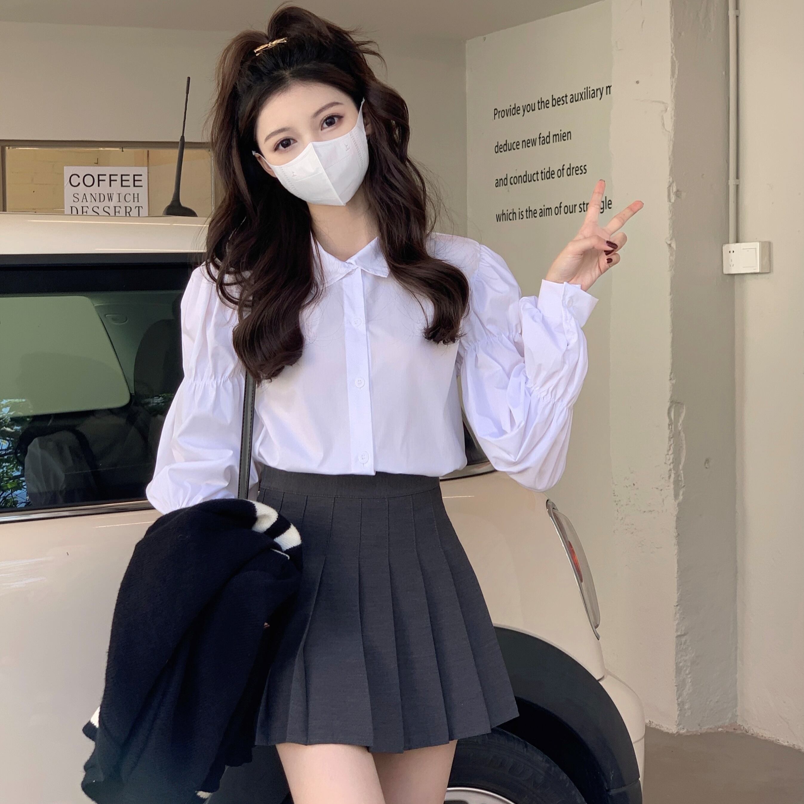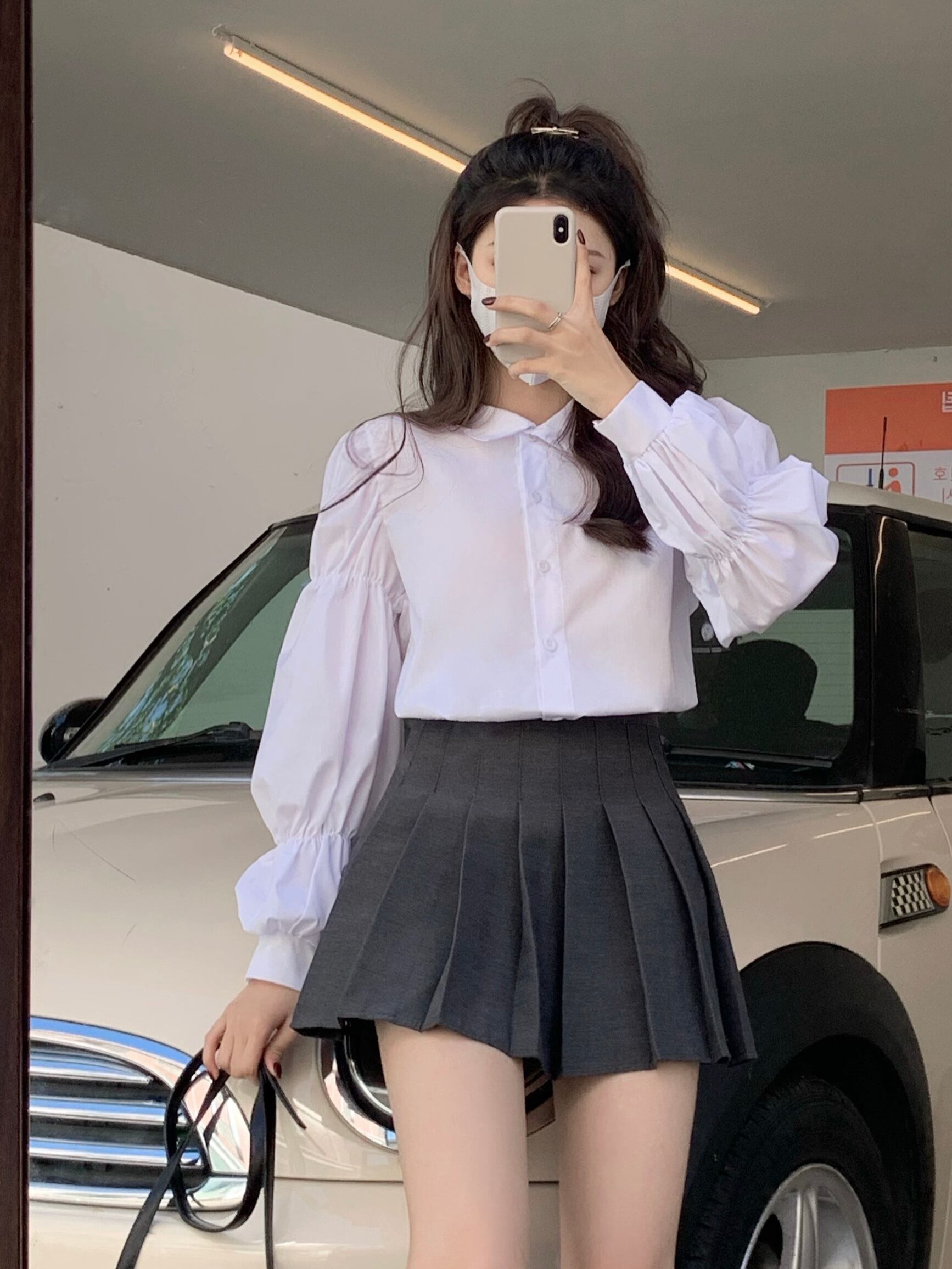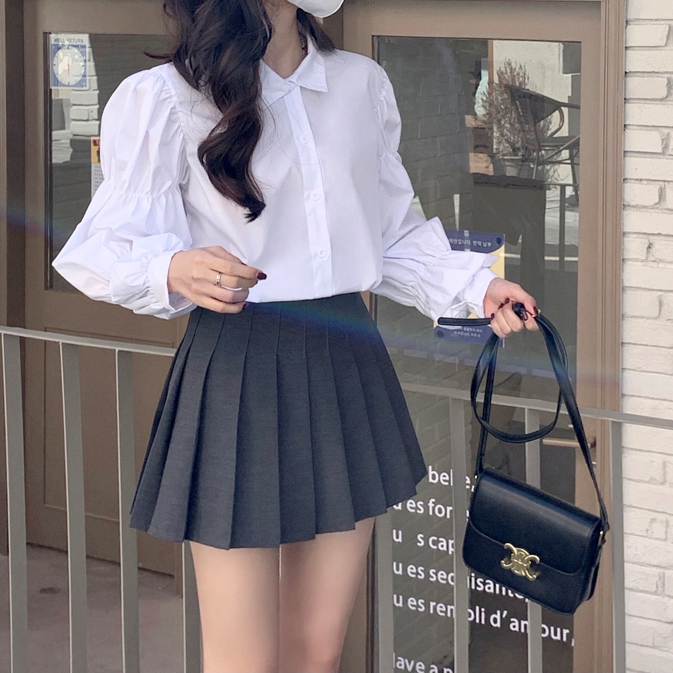 セットアップ 上下セット ブラウス スカート レディース オシャレ お洒落 かわいい 大人可愛い ガーリー フェミニン きれいめ 長袖 無地 ミニ丈 膝上 黒 ブラック 白 ホワイト お得 お買い得 楽ちん 着回し 春 夏 秋 冬 オールシーズン カジュアル 体型カバー 着痩せ 10代 20代 30代 パフスリーブ トップス 薄手 プリーツスカート Aライン 2点セット 映え SNS 女子会 王道 双子 お揃い コーデ 韓国 トレンド 流行 着回し 学生 制服 スクール S М L