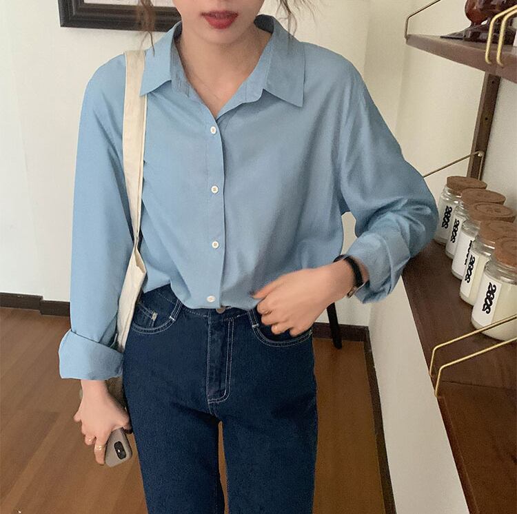 トップス ブラウス シャツ 8色 襟付き 長袖 ゆったり レディース きれいめ 上品 エレガント お洒落 オシャレ かわいい 大人可愛い 20代 30代 40代 50代 ОL 通勤 仕事 オフィス シンプル カジュアル 春 秋 夏 冬 オールシーズン こなれ感 休日 お出かけ 女子会 Iライン ストレート 無地 ホワイト 白 ブルー 青 イエロー 黄色 赤 レッド ピンク グリーン 緑 茶色 ブラウン 黒 ブラック 薄手 抜け感 知的 美人 清潔感 清楚 着回し 前開き ボタン 着痩せ カラバリ
