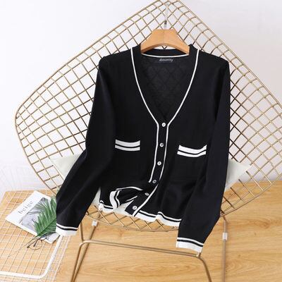 トップス ニット カーディガン バイカラー ライン 厚手 長袖 レディース ゆったり 前開き ボタン シンプル カジュアル ラフ ブラック 黒 白 ホワイト ルーズ ゆる リラックス 休日 お出かけ 公園 体型カバー 着痩せ 細見え 10代 20代 30代 40代 50代 春 秋 冬 お洒落 オシャレ かわいい 大人可愛い 色違い 映え SNS あったか 暖かい Vネック 抜け感 こなれ感 S М L XL レトロ アンティーク ヴィンテージ 学生 学校 スクール 制服 ОL 通勤 仕事 オフィス
