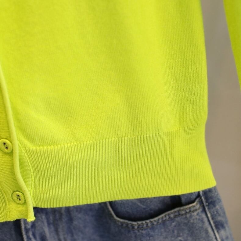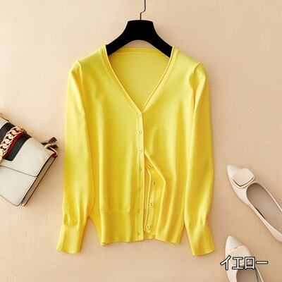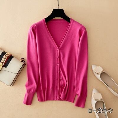 パステルカラーから原色まで、11色から選べるカーディガンです。
