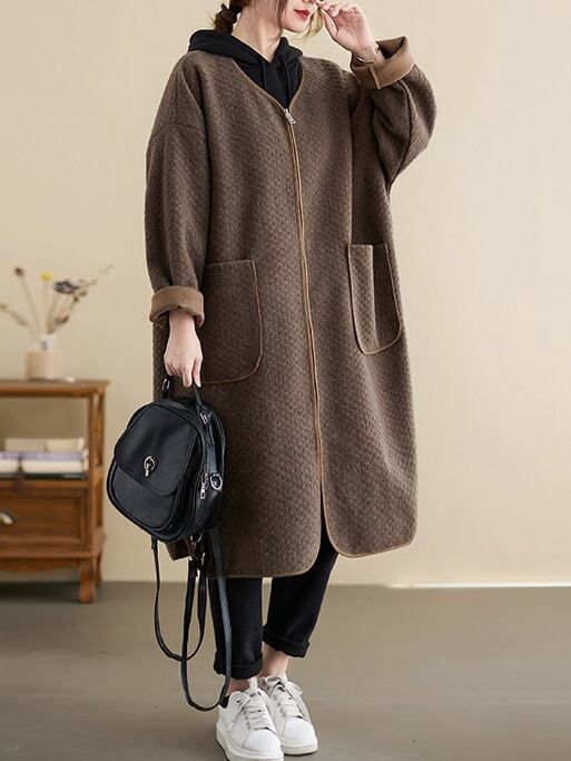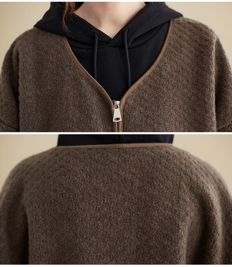 トップス カーディガン コート アウター 2色 ロング丈 長袖 レディース ボア フリース ゆったり 大きめ シンプル カジュアル ラフ 無地 ブラック 黒 ブラウン 茶色 くすみカラー ルーズ ゆる リラックス 萌え袖 お出かけ ショッピング 体型カバー 着痩せ 細見え ストレート Iライン 20代 30代 40代 50代 60代 春 秋 冬 お洒落 オシャレ かわいい 大人可愛い こなれ感 あったか 暖かい 羽織 着心地 スリット ファスナー ジップアップポケット ドロップショルダー Vネック